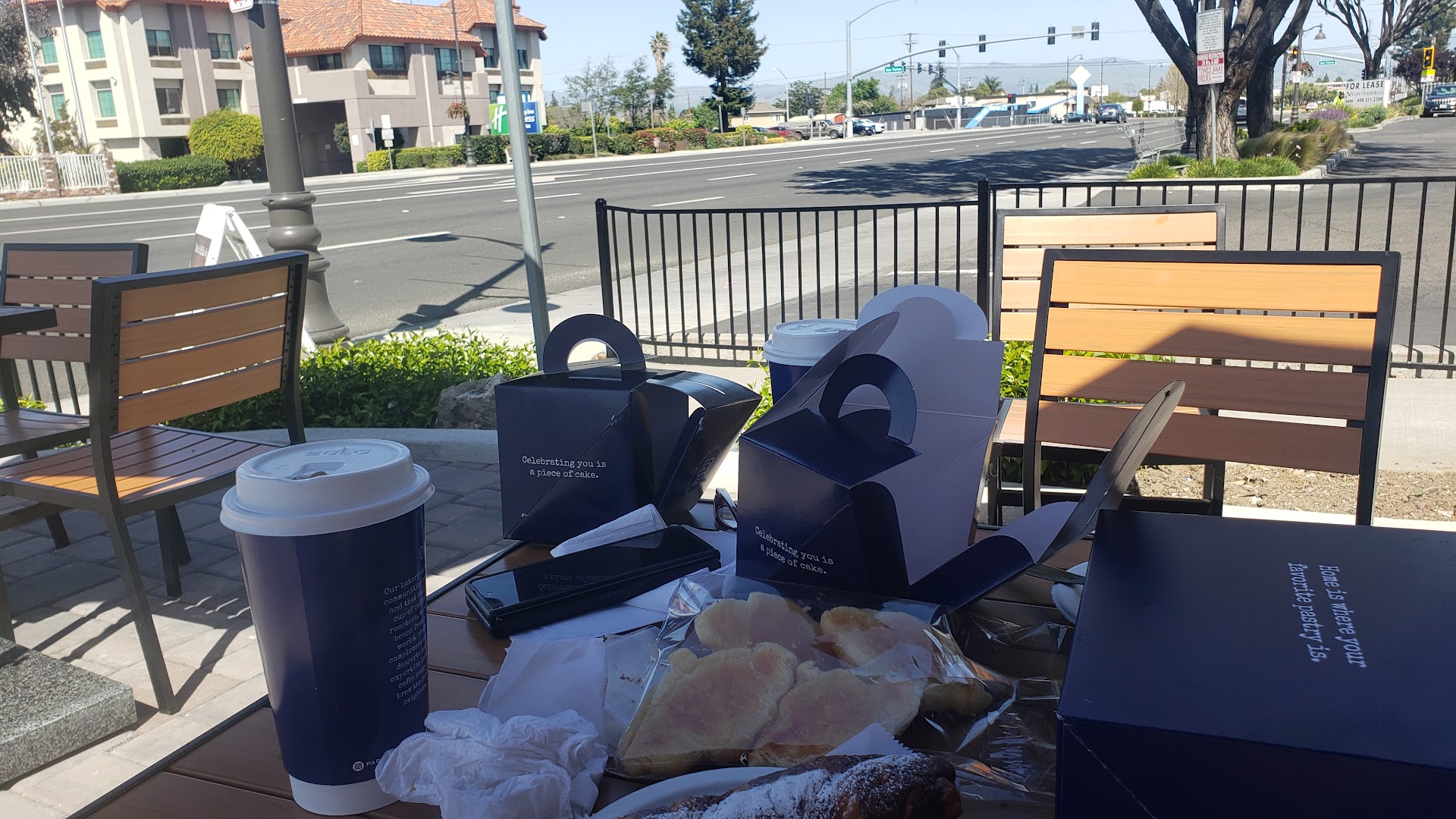 Pros: A bathroom (1), a few outdoor tables, a mix of sweet and savory options, full blown drink menu. Staff were sweet, place is spotless. Secretly wish they'd gotten 2 store units to spread out but for now think of this as a pop-up PB, or "PB Outlet." :)