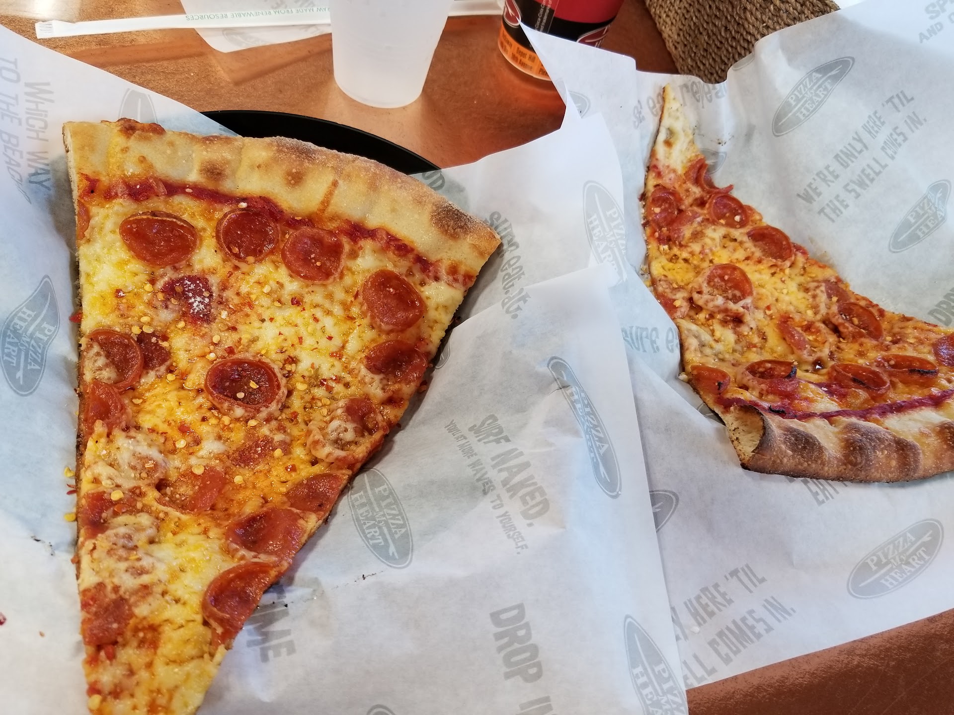 The most memorable experience! My boyfriend and I were in the city for the weekend we decided to give “Pizza my heart” a try since it was nearby and I am so happy that we did. We were greeted by the most pleasant cashier who made all the difference in our experience, he encouraged us to try different pizzas we had never tried and absolutely loved them! The atmosphere was upbeat, there were a variety of pizza’s to choose from and they keep ranch accessible for customers in the fridge so you can help yourself to as much as you want. My only regret is not getting the cashiers name for the purpose of this review but definitely plan to visit again to makeup for the free t-shirts he gave us and the best...