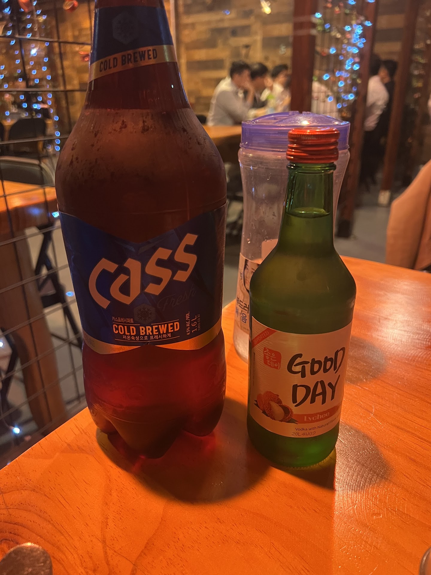 Ordered quite a bit of food. We had the spicy boneless chicken, sweet potato fries, tonkatsu, and a kimchi fried rice. Also had some soju and beer to pair with the meal.