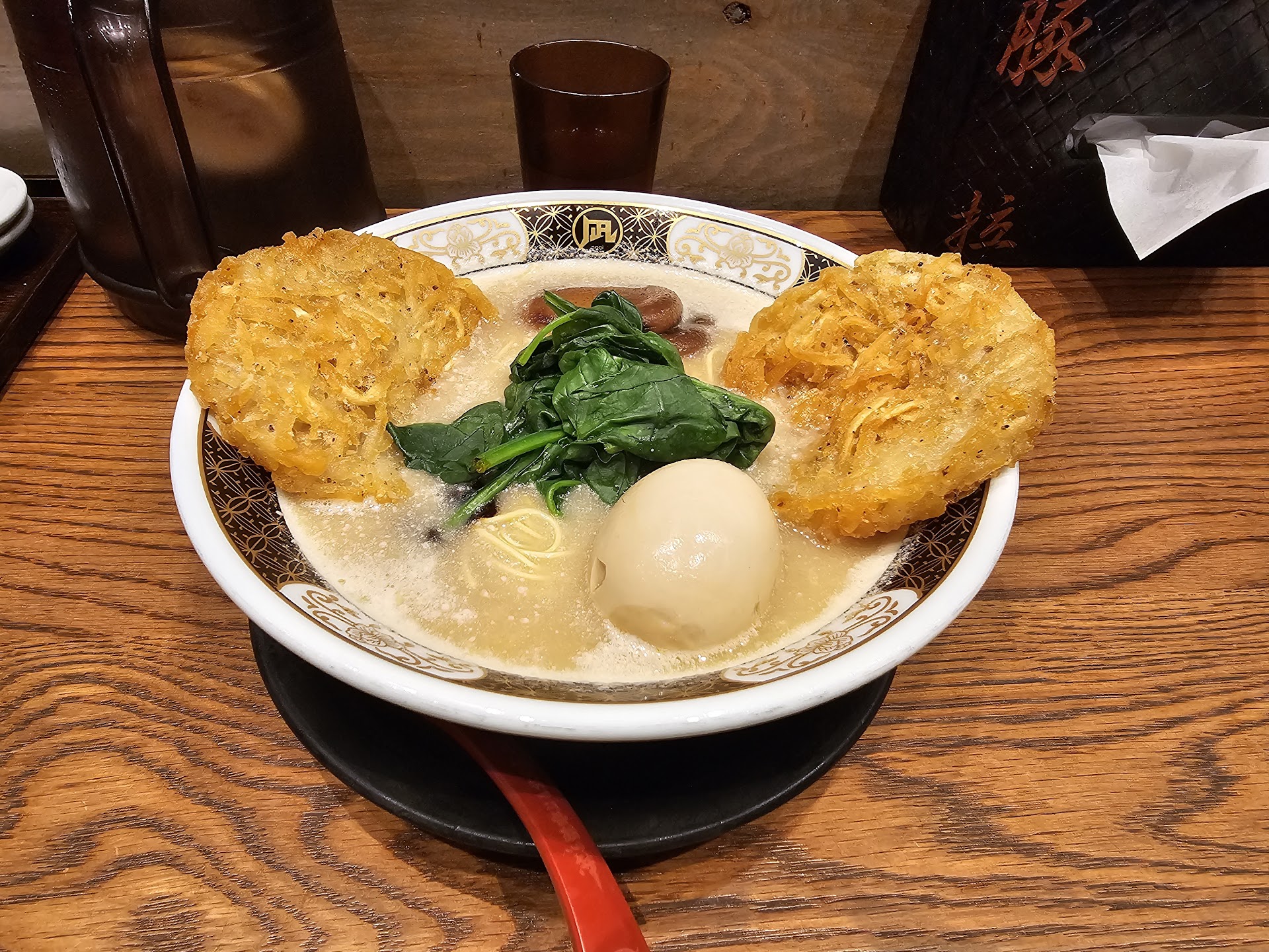 Read moreAs the first Michelin Star ramen shop in Tokyo, this place has a reputation preceding it. My experience surpassed my expectations. By a lot. First thing to know is they open at 11am, the line forms as much as a half hour before that though. I was number four in line when I got there at 10:30am. By the time they opened at 11:00 the line was much much longer. We were able to get in on the first seating and our food was on the table within a few minutes. We ordered the items that I would now consider "Must Haves". For starters or side dishes, I highly recommend the gyoza and the chicken karage. The gyoza are smaller than others I've had, but the flavor is the highest quality. The way that they fry them up in a circle is art on the plate. The frilly apron that forms holding them together becomes the top when they are turned out on a plate. Crunchy and delicious apron, juicy gyoza. Perfection! The chicken karage is made with chicken thighs. Cut into large pieces coated in a light but perfectly spiced batter and then deep fried to juicy perfection. The karage is served with a side of Japanese egg salad. Very simple and delicious. I suggest trying the chicken by itself first then trying it dipped in your ramen broth. Chef's kiss! The ramen is the star of this show and deservedly so. When you are waiting in line they give you a half sheet of paper with the ramen options and menu on it. The sizes are all king size, the flavor variations are listed with plenty of ways to customize the perfect bowl of ramen for yourself. Having never been here I went for the recommended Original King with the Chashu (sliced pork loin), all of the recommended settings for things like garlic, salt and oil. I added on the Tamago marinated egg and was quite happy with it's perfect jamminess. I ordered my ramen with the thin noodles. I usually have the thicker noodles but was a surprised to find these thinner noodles to be even better. No review on a ramen place would be worth reading if it did not touch on the broth itself. If the ramen is the star of the show, it is because of that tonkatsu broth! So luscious and velvety. You could remove everything from the bowl, leaving just the broth and I would have enjoyed it thoroughly. So many flavors coming together, a very long cooking time to extract all of the collagen from the pork bones. The other styles available include: Red King: A velvety broth with garlic, chili oil, cayenne pepper, miso-infused minced pork, and chashu Black King: A silky broth with blackened garlic, calamari ink, chashu, minced pork, black sesame, and Nagi spices Green King: Tonkotsu broth with basil, olive oil, parmesan cheese, and chashu Veggie King: Cauliflower based It's important to note that this restaurant is "Dine in only", no takeout or to-go orders accepted. Understandably, they would like you to enjoy your ramen at its peak...