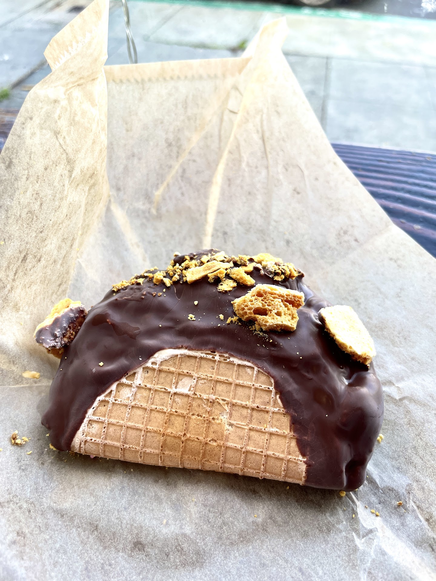 They had an unclear menu. For example, you can actually do two flavors for the regular taco at 50 cents extra, price not specified. I ended up getting The King after trying a couple flavors. It has banana creme ice cream (another one of my fav flavors), peanut butter dip, and dried honeycomb....