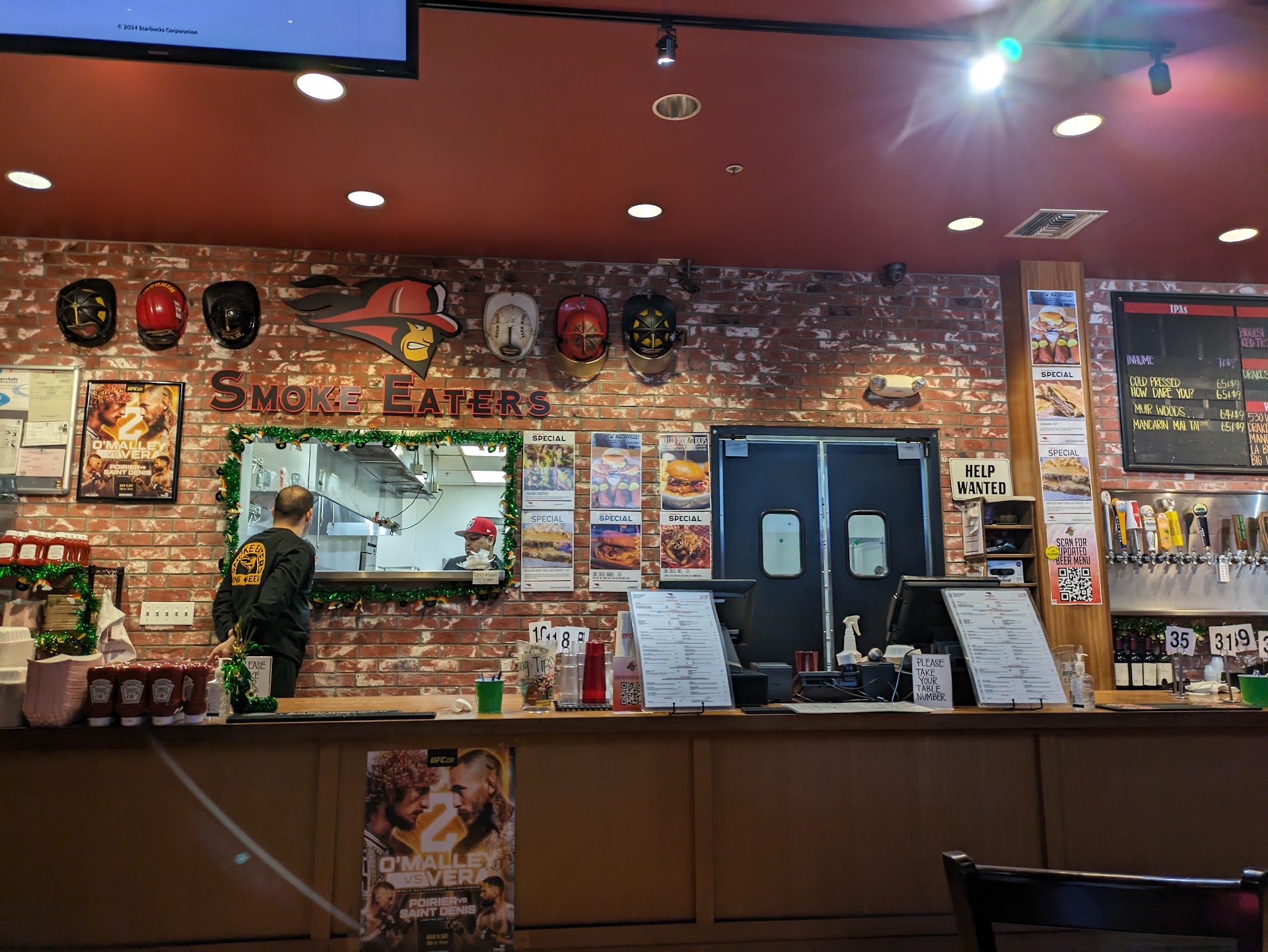 Atmosphere is loud sports bar, order at the front and seat yourself (unless you sit at the bar then overworked but still very nice bar tender takes your order). It was pretty crowded when I went but it was also an NBA playoff game so maybe expected. I felt lucky to get a seat, we snagged one of the last ones. Despite slightly stressful seating arrangements, I will definitely return for their...