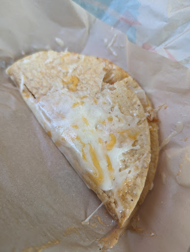 Read moreWent through drive through, they forgot my sauces so I thought no big deal I'll come in and eat. I waited a few minutes just to ask for a water cup, not really acknowledged but again, Whatever. Sit down to eat and look at my sons quesadilla and noticed there was only a small amount of cheese in the middle and not even halfway to the edge and not melted at all. I asked them to make another for me which they did, I open it up to give my son a slice and there is a SPIDER HANGING OFF OF IT. I asked for my money back. Which was given to me begrudgingly and with NO apology. So disgusting.