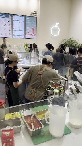 Food safety is a significant concern at this location. The first thing I noticed was the dirty glasses. Behind them, perishable items like fruits, milk, and milk products were left exposed to the air, as shown in the photo. It was extremely hot inside the store, raising questions about whether they forgot to turn on the AC or were just cutting costs. Plus, I noticed flies in the store as well. These factors alone made me question the safety of their drinks. Moreover, the glasses do nothing to block contaminants; customers waiting in line could easily spread germs into the drink ingredients while talking.