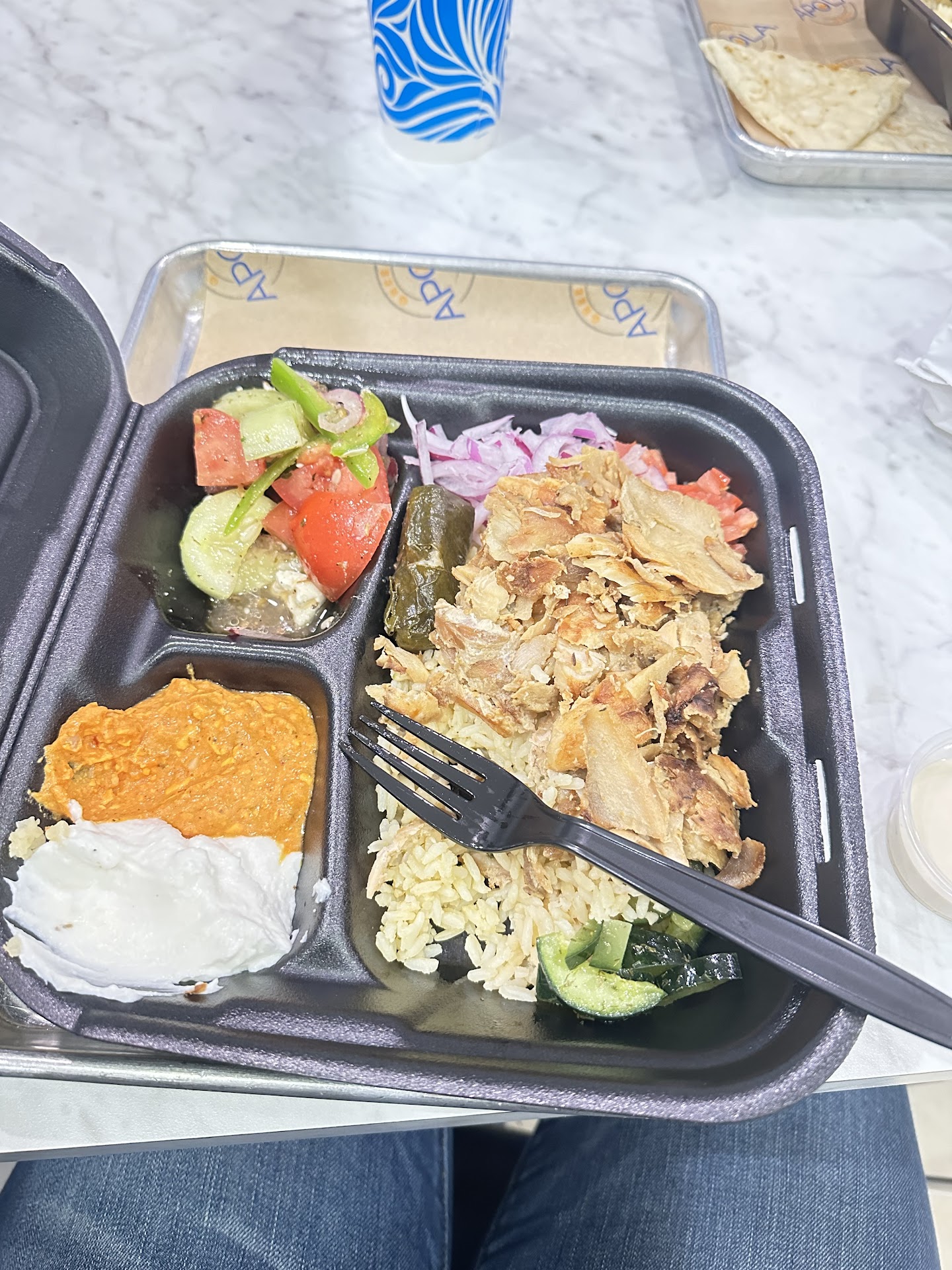 Read moreAfter a long day I stopped in here for a quick bite for dinner and was not disappointed. I was met with smiling faces ready to help me. I got the chicken gyro plate. The ingredients were top knotch fresh and home cooked flavors. They make their sauces fresh and you can taste it ! Do yourself a favor and get the garlic spread. It could make a rotten shoe taste good. The owner even brought over some falafel to try and wow so fresh and delicious. My only regret is not getting a plate...
