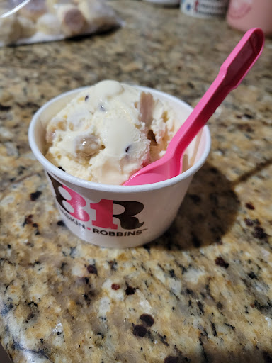 My wife and I stopped by this Baskin Robbins after grabbing dinner nearby at a restaurant. She wanted her rocky road ice cream so this Baskin Robbins was ideal for us. We found parking easily in the front because it was night time and I guess not a lot of people come here. There was a lady in front of us with a big order so we had to wait. When it was our turn, I got a single scoop rocky road on a salt cone for my wife and a single scoop chocolate chip on a regular cone. Our ice cream was delicious and we ate it inside at the sofa area they had. The employees were very nice to use and provided great customer service. There no bathroom for customers in here...