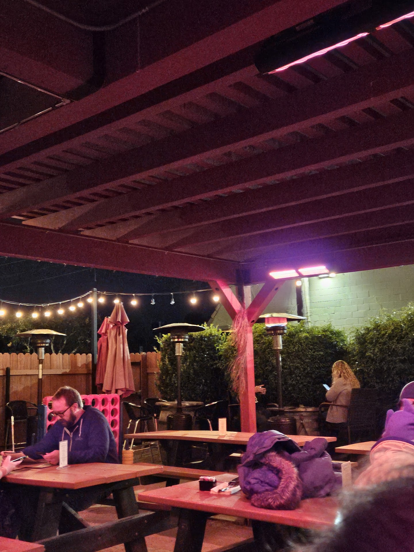 This was a cute little brewery! We were in town and noticed our airbnb was right across from this Main st area. We went in on a Friday night around 7 pm or so. There was a wait inside, which is a little on the smaller side, so we opted for the outside area because they had warmers. They had cornhole and giant connect 4 out there, so that was cool. I did also see that they have 18+ comedy and board games to play. At first, it was just the 4 of us and another couple outside, but it filled up pretty quick.