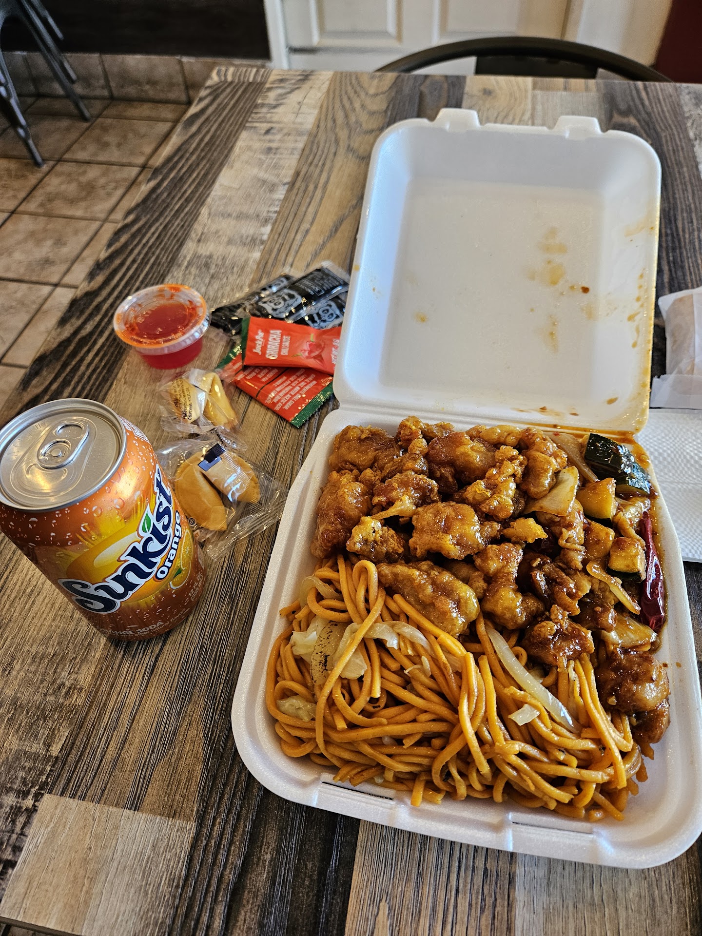 The lunch special here is amazing and for the price, it's totally worth it. I came here yesterday to grab lunch when my wife was getting her face treatment nearby. I saw this place before on Google Map and looked at it so I knew it was an option to get food from here if I was hungry. So when I was walking around the plaza this place is in, I saw that they had a lunch special and I thought it was a deal. The lunch special is the Combo B where you get 2 entree, 2 side, egg rolls and a can soda. So when I walked inside, they were already kind of busy. When it was my turn, I asked for the chow Mein, kung Pao chicken and orange chicken for my combo. They were out of orange chicken so they asked if I mind waiting which I didnt and it didn't take long for them to bring out the new batch. I ate my food inside of this place, they have limited seating here so be aware. They give you like 2 chili sauce packets, 2 soy sauce packets, 1 sweet and sour sauce and 2 fortune cookies. If you want more sauces then they will charge you for it. The portion of food they give here is great, bigger than other popular places. I like the Chow Mein and Kung Pao chicken, the orange chicken is a different taste to me but it's not that bad. They were getting good business when I was here and everyone else was taking advantage of their lunch...