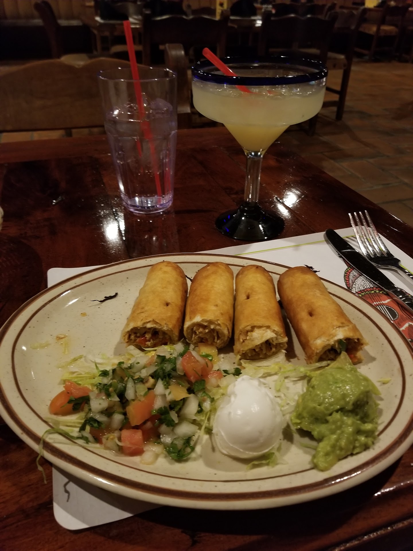 Read morenice staff and the inside looks pretty good. very large dining area and then separate bar area with dining and sports on. I thought the salsa tasted a bit like ketchup but my wife didn't really think that but agreed not the best she has had. The House Margarita was decent. the rice was good, the beans were OK but nothing special. my wife had a bean and cheese burrito smothered in red sauce and it was decent she said but she likes our normal spot better.