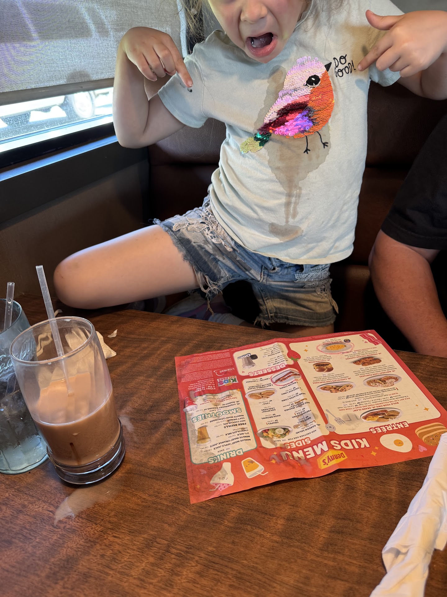 Read moreIt took 15 minutes to get our order taken, and then she brought a large glass of ice water; the only one who asked for water was the child, who also asked for chocolate milk. Thirty minutes later, the waitress brings the kidâs Mac-n-cheese with side bacon and my 3/4 of my grand slam meal. It takes another 20 mins to get my husbandâs salad. At that point, we had to ask for the kidâs chocolate milk, my husbandâs soda, and the rest of my meal, which was bacon. The kidâs chocolate milk ended up being an adult one. After I finish my meal, the kid finishes hers and my husband is almost done, does she finally bring bacon that looks like it never saw the flat top. After pointing out that I asked for it well done, she stood there and asked if that meant I wanted it redone. So, waiting another 10 minutes to get the bacon. We have been here for over 2 hours before our order was finally delivered. Mind you, the people who came after us had their orders taken and brought to them before our first stage of food arrived. Oh and not to mention the large chocolate milk for the child was so full and without a lid that the moment my kid tried to take a drink with a straw it spilled all down her front soaking her shirt...