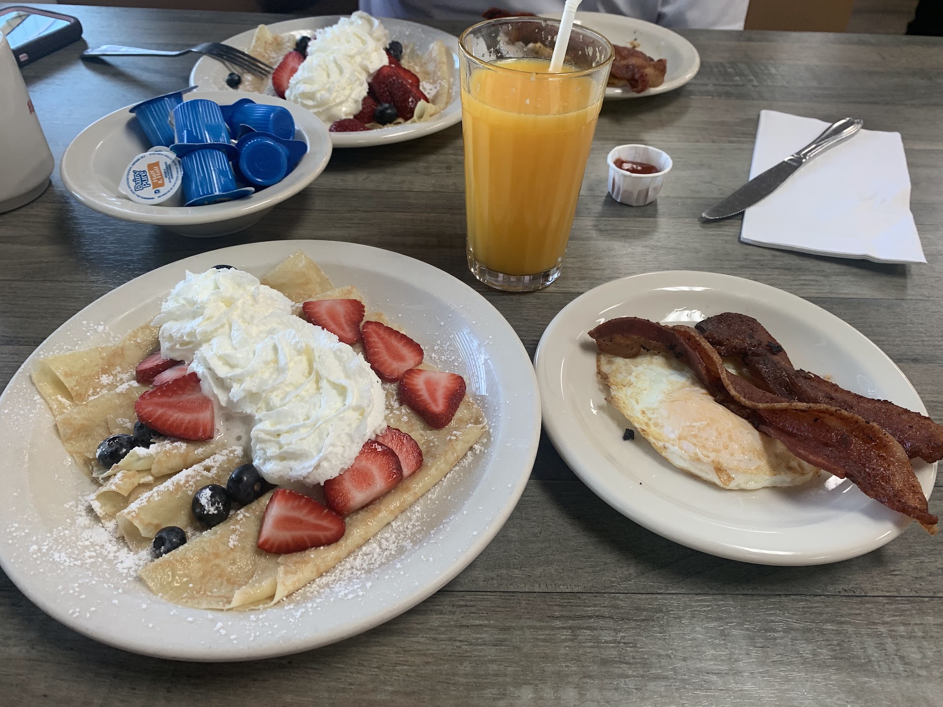 Ā Ā Ā Read moreMy boyfriend and I ate here for the first (and last) time while being on vacation. It was very busy so I had pretty high expectations. I liked their patio it was cute and nice to have outdoor seating. We were a bit confused about the complimentary crepe we were given (as it wasnāt explained to us that we would receive it). I thought it was a nice touch but unfortunately it didnāt have much taste. Our sever was barely around which was frustrating but I tried to be understanding due to the fact that it was busy. I was going to order a breakfast burrito but decided to switch it up and get Eggs Benedict and boy did I regret that decision!! The hollandaise sauce had a strange flavor and even the ham that came with it was unappetizing. I tried to still eat most of it (avoiding the sauce) as I was pretty hungry and didnāt want to leave hungry as well. Later that night, however, I ended up with horrible stomach cramps and what turned out to be food poisoning. I was sick for many, many hours! I know it was due to the food I had at this restaurant as my boyfriend and I shared food at other places. The only thing we didnāt share? My Eggs Benedict and he was fine. I wish I had read other peopleās reviews regarding this dish which spoke of how bad it is and just never come here. Iām convinced I was served spoiled food 𤮠and it ruined a night/next morning of our trip. Do yourself and your body a favor and your...