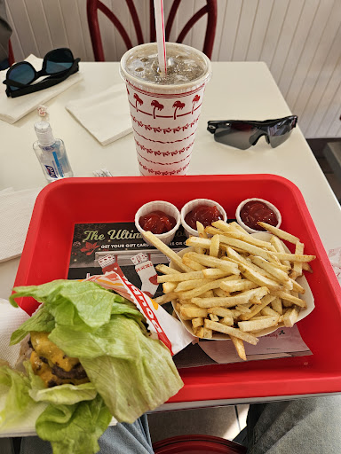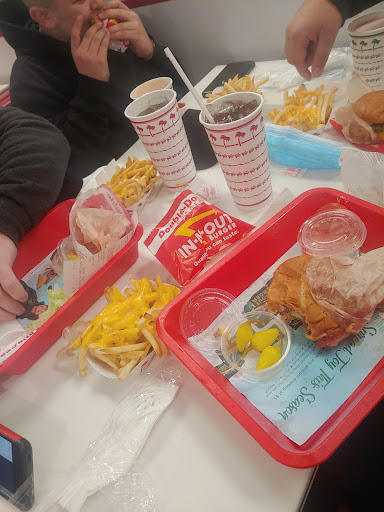 Read moreYou can never go wrong with In N Out beside coming after lunch because they will be busy. My friends and I stopped by this In N Out because we were nearby at a range. We came an hour after they officially open so we figure they wouldn't be as busy. I found parking alright but just remember to not park near the drive thru lane because you might get stuck. When I went inside, the order line isn't that long so it can extend out the door during busy time. I got my 3X2 protein style burger with chopped chili and made it into a full meal. Make sure to confirm your order because the person taking your order might not put it in right like I experience. I'm happy that they added cherry coke as an option for the soda. I found a table inside and we dine in. It didn't take long for my number to be called and my burger was delicious. They usually don't make the presentation of the 3X2 protein burger looking good so I didn't expect that. The workers here are friendly if you need any help and the bathroom is near where the...