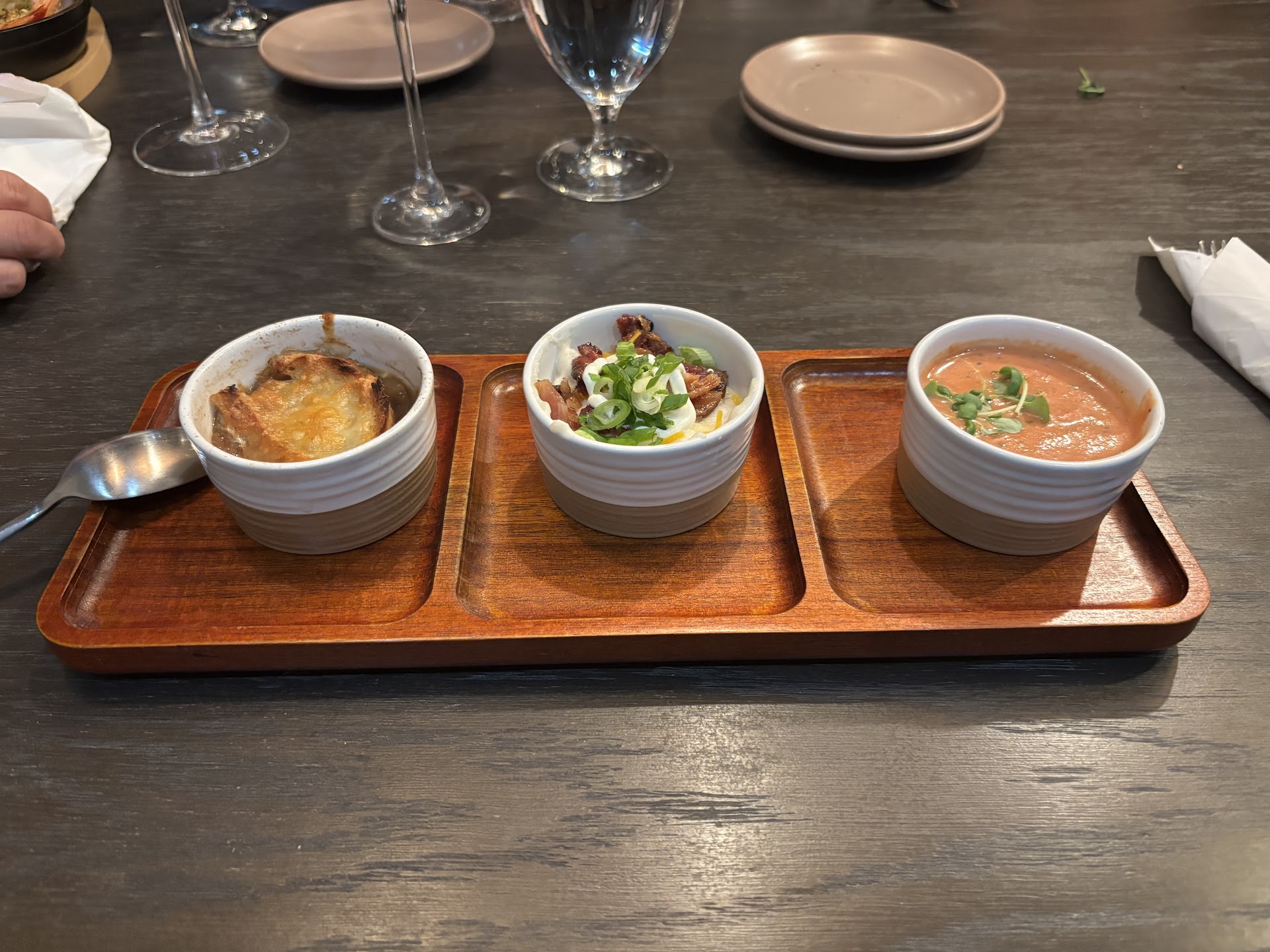 It still has that new restaurant vibe. Everything is clean, the staff is really attentive. There are lots of seating options, including tables and seats at the spacious bar, and a separate room as well. My wife and I sat at a table near the bar, the place wasn't packed on a Thursday night so we probably didn't need a reservation, but never a bad idea to have one.