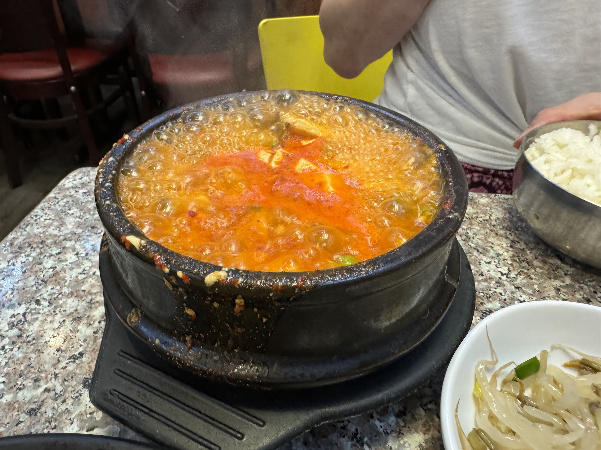 I recommend getting the combo (meat + half tofu soup). My eldest daughter liked her non-spicy dumpling tofu soup. The banchan could be better though.
