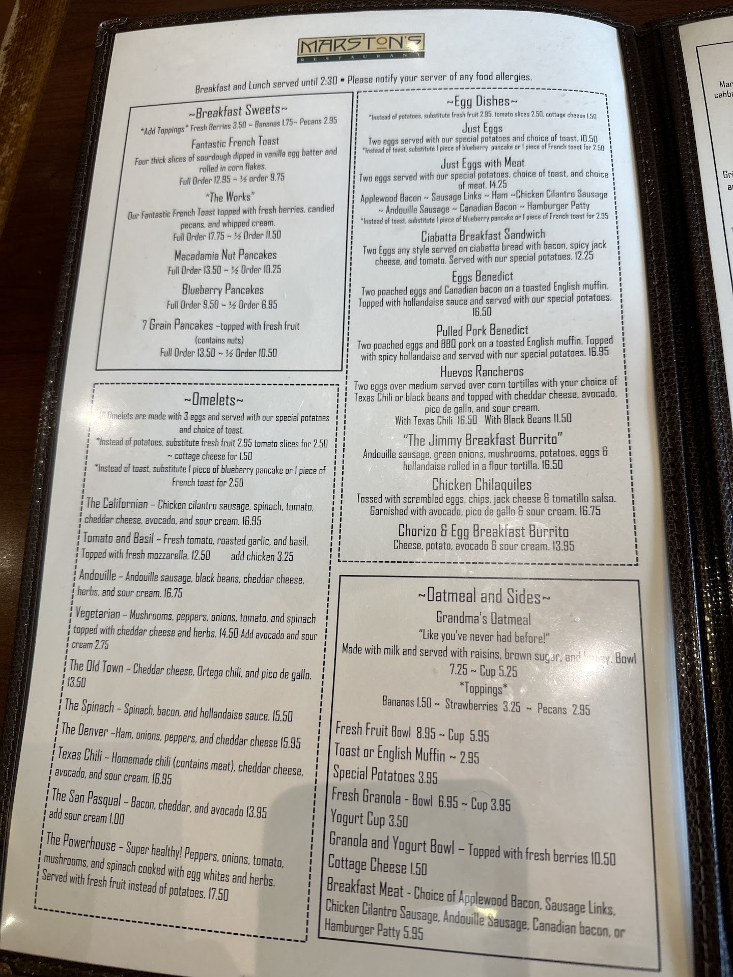 Marston's has a slightly more nicer/upscale vibe than your average diner in town and you can get just about anything you want for breakfast. We glanced at the dinner menu and there are definitely options for vegetarians too so we may give it a...
