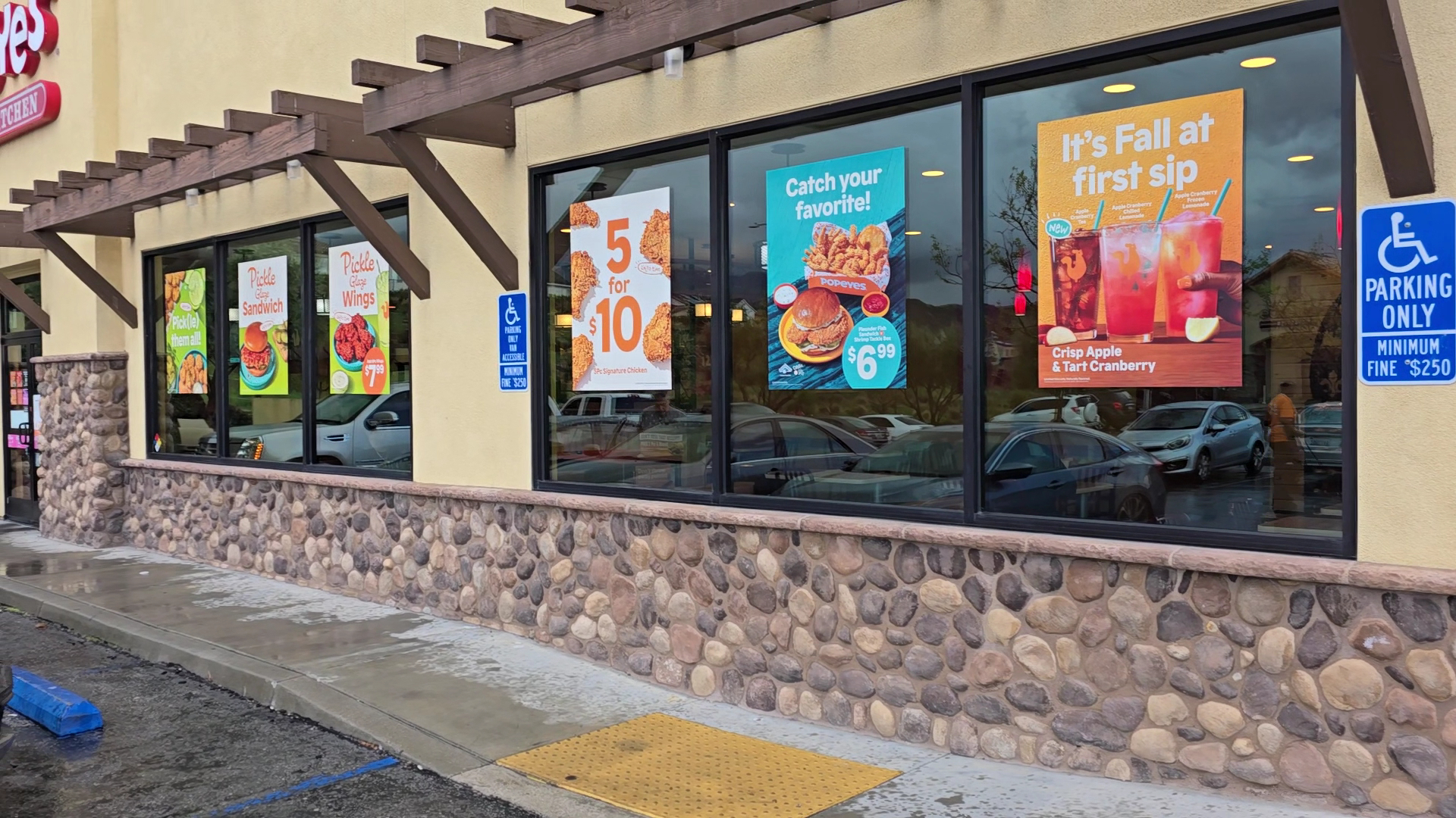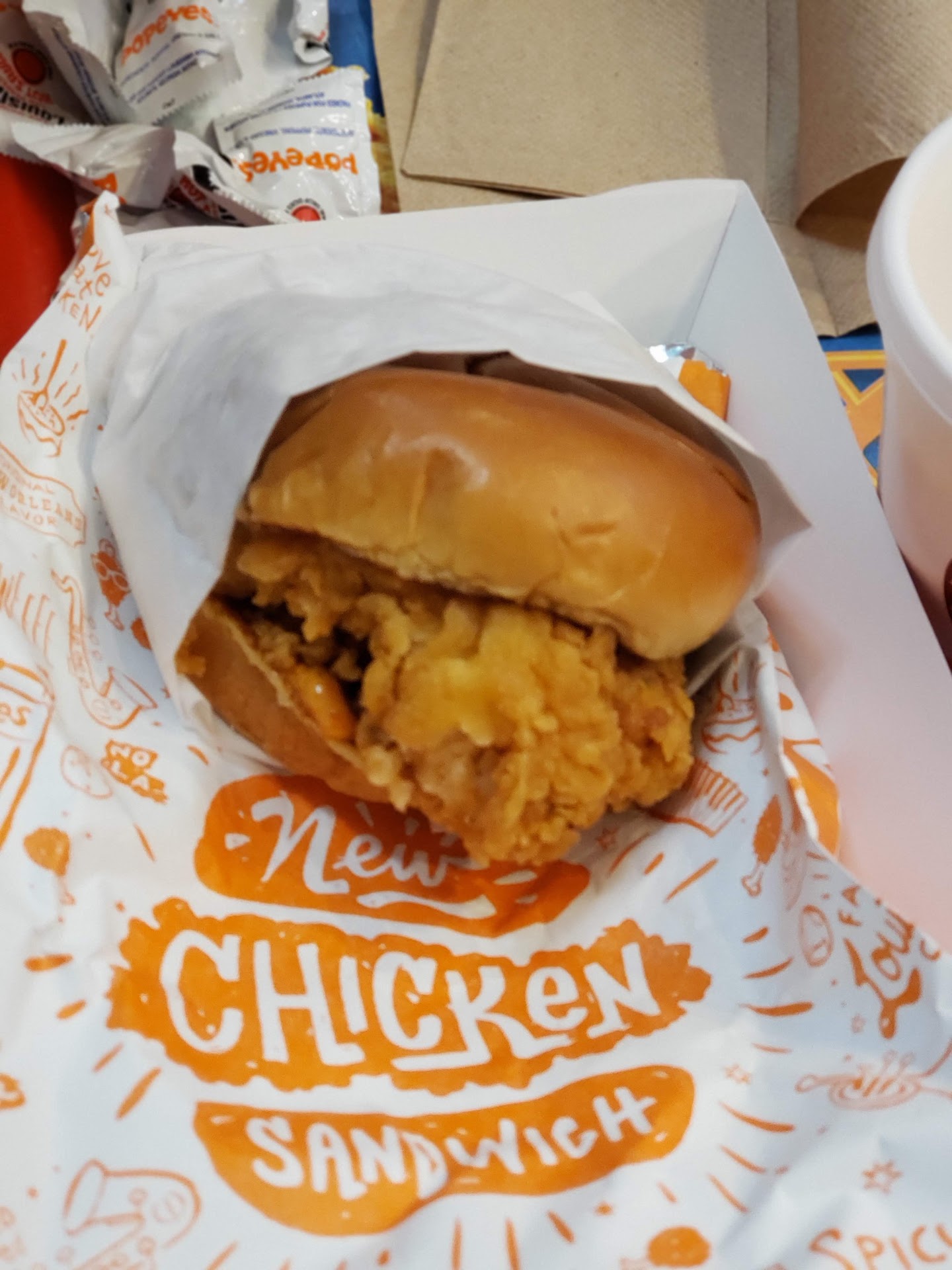 This is by far the worst Popeyes that I have ever been to in my life (and I've been to A LOT of them, including the OG full service restaurant in Louisiana). This location was my 3rd time visit since it first opened. Compared to the Popeyes in Newhall, the food here is REALLY BAD. The server that greeted me was nice (all of the staff were nice) she had this "I really don't want to be here" demeanor though. She took my order, I always ask for the chicken that just came out of the fryer to make sure that it's fresh and hot. That was no problem. I watched a batch come out "fresh", and that's what I got. I ordered fries that also came out "fresh", red beans & rice, and an apple pie. I went to my car to eat it (I haven't felt comfortable eating in their dining room ever since there was a shooting at this location, but I digress), and the food was lukewarm - cold. How does that happen?! I watched the food come out, but I noticed that there was no steam coming from any of the food. Usually when hot food comes out you can see the steam emanating from it. This was not the case. The red beans and rice were putrid. It smelled and tasted horrible. Really bitter. I didn't even bother eating it. The biscuit was hard as a brick. The 1st thing I tried were my fries and I went back in to get new ones. The manager happily replaced them with "new" ones. Would you believe that they too were soggy and lukewarm? I tried the other items afterwards. It was all gross. I gave up and trashed my food. I blame myself. I should've known better based on the previous 2 visits. The one star is for the apple pie. It was so good. Hot and crispy just like my food should...