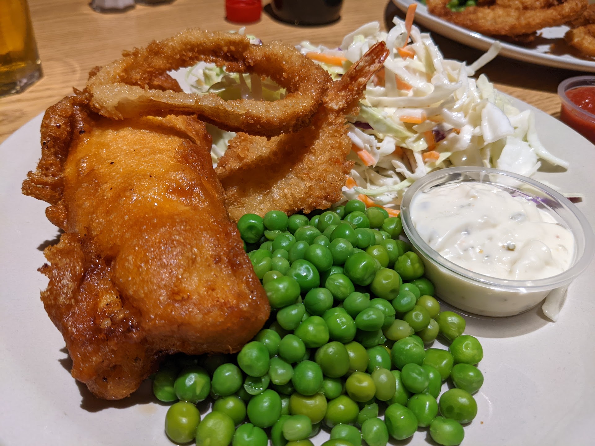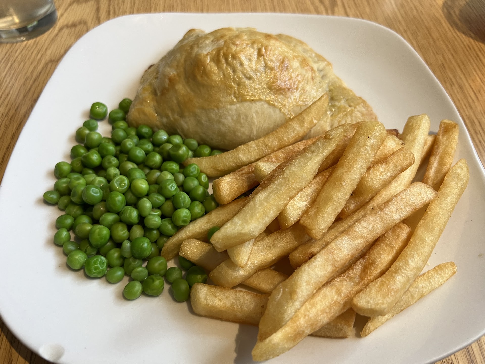 I came for dinner, so in addition to the London Pride (and there are plenty of other beers on tap to choose from) I got the one vegetarian item on the menu which was the Cheese and Onion Pasty. I got it as a meal meaning it was served with peas (not mushy) and a side of my choice (fries chosen over mashed potatoes and salad.) It was good, indulgent, lots of cheese in a pastry crust...this and the peas and fries satisfied me.