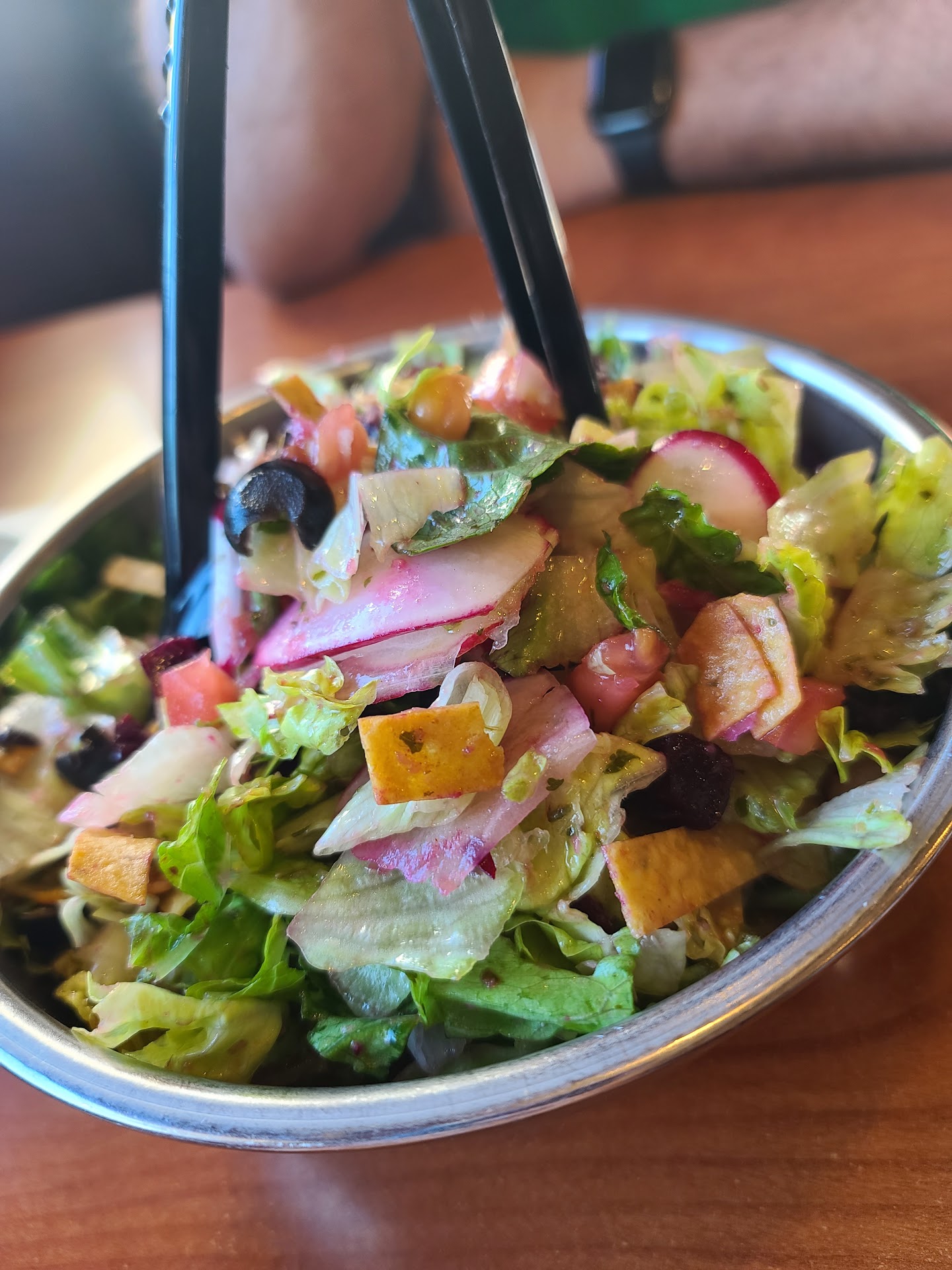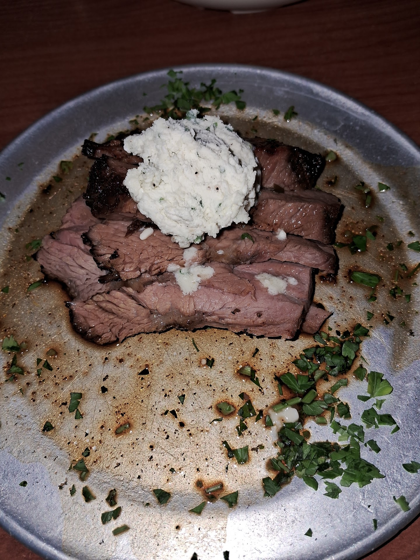 I ordered the tri-tip as it sounded yummy and paid the upgrade to get a salad as well as the Mac and cheese. They didn't have blue cheese dressing which was disappointing but had a lot of other weird homemade dressings. I got the cilantro lime and it was terrible. I typically finish my salad 🥗 but here it was disgusting and I didn't like the alternative dressings they had, so I just didn't eat it.