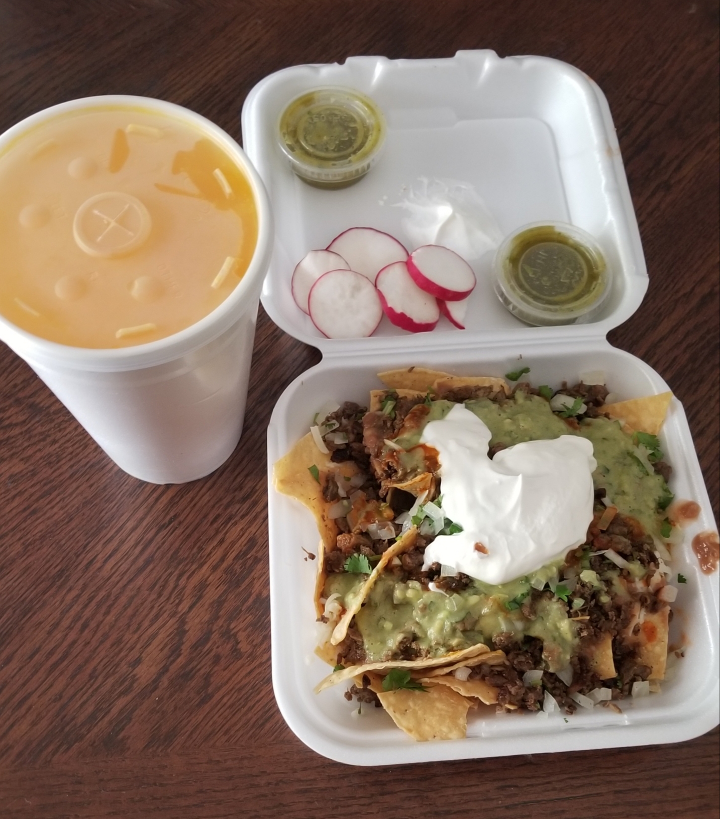 The food was well-wrapped and tasted great. The horchata was fresh and just right.