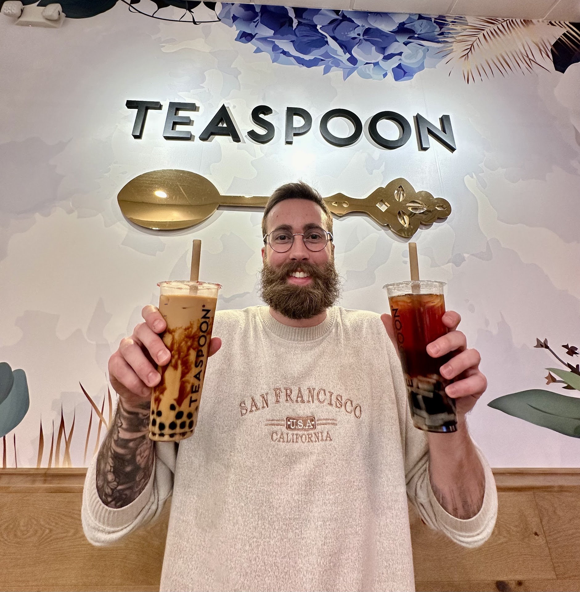 I'm not from SoCal, but I made this stop on my way to Disneyland. It's a nice alternative to a coffee shop, but they have mostly tea - no drip coffee. You can add espresso shots to your tea, though. I bought one of their seasonal drinks, the coca lovers tea. Fantastic if you normally are used to mocha. We also got a jasmine milk tea, which was spot on.y favorite is a dirty ube with popping boba - probably the best I've had. They have over 10+ kinds/flavors of boba. The service was accurate and fantastic. I love Teaspoon, and I usually go to their Bay Area locations whenever I'm near by. The cafe has a nice atmosphere with seating; there is no outside seating. Check out their rewards program for coupons and free drinks. Definitely worth checking out if you like milk tea...