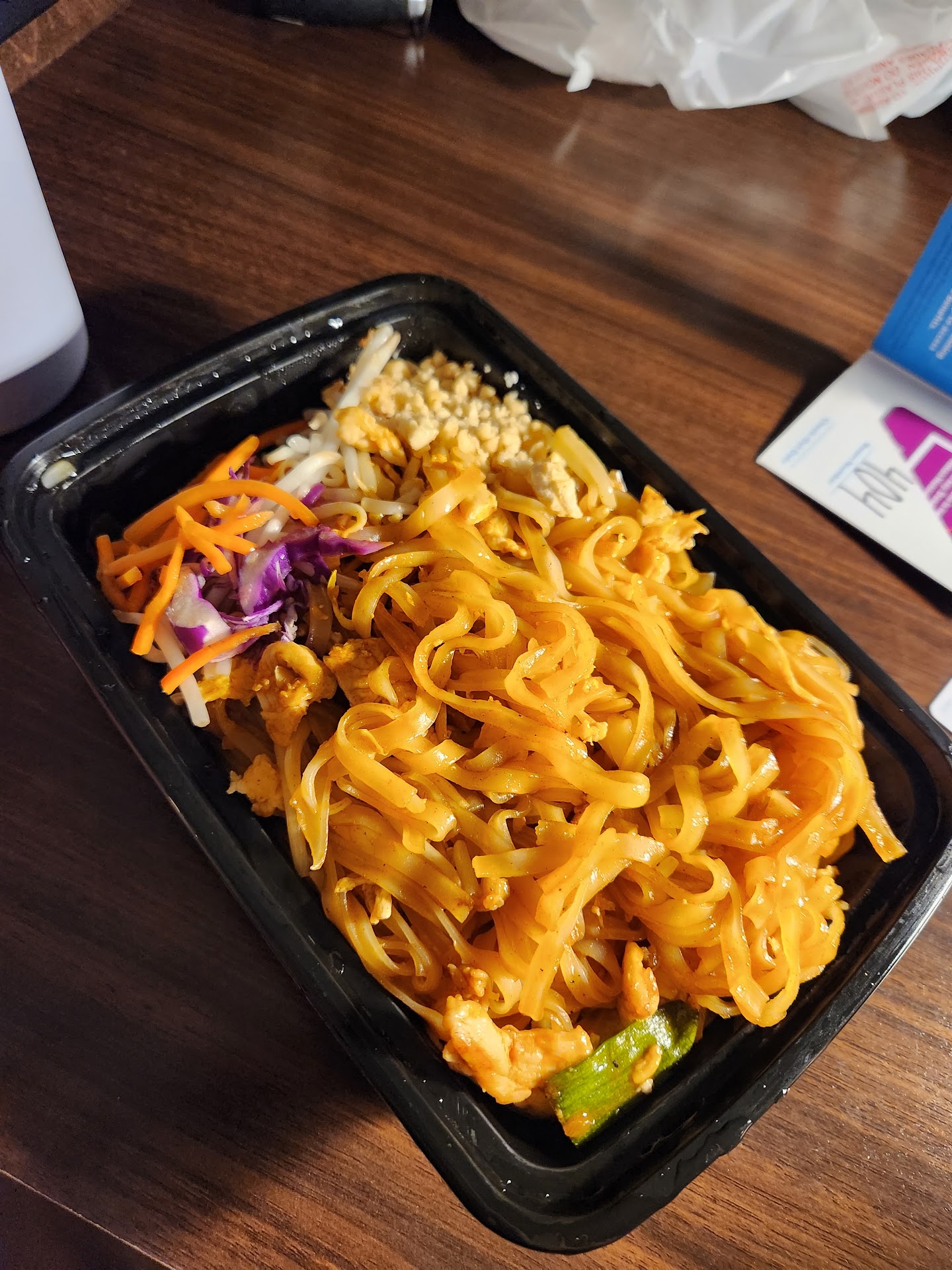 I took my food to my hotel and it was still piping hot after about 15 minutes, the Pad Thai (pictured) was massive, after (5) Chicken Satay Skewers I was only able to finish it after taking a 2hr break. The portion size for to-go was huge and usually that's never the case. The vegetables were crisp, and the pickled chillis and cucumbers on the side with the Satay were AMAZING. Those are the reason I'd come back.