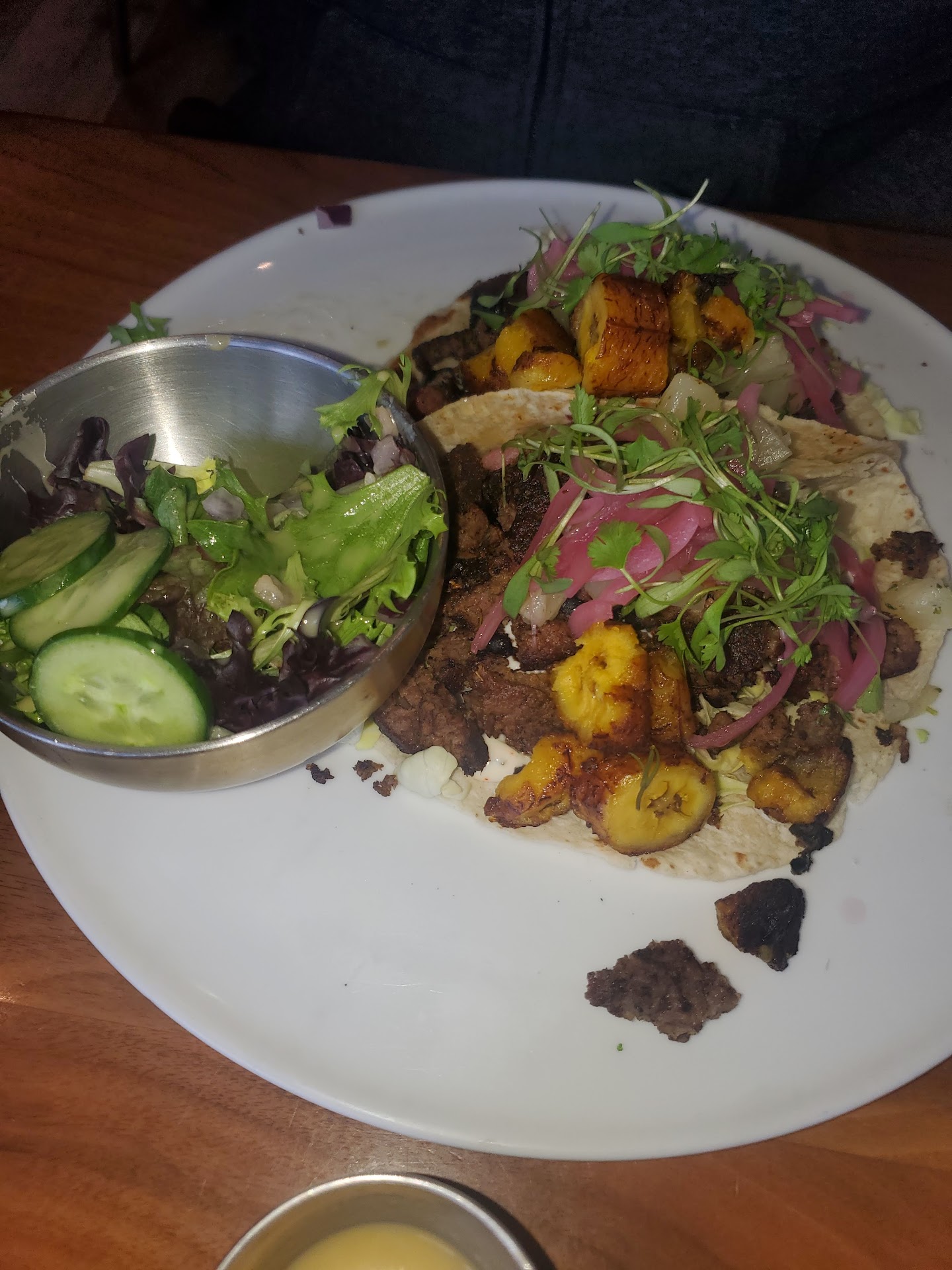 This was such a great choice. First of all, they gave us a great seat where we could see the restaurant in all its glory. Then they made us fantastic drinks. They weren't overkill and didn't taste like bottled cheap ingredients. They were refreshing and clean. Then our main course came. Not only was it beautiful but it was so good. Not like oh that's pretty good. I'm talking, we will never go anywhere else in the Santa Clarita Valley over this place. That good. I had the steak and my husband had the pork. Holy goodness it was unreal. And not those tiny little portions you sometimes see at trendy restaurants. This place totally delivered.