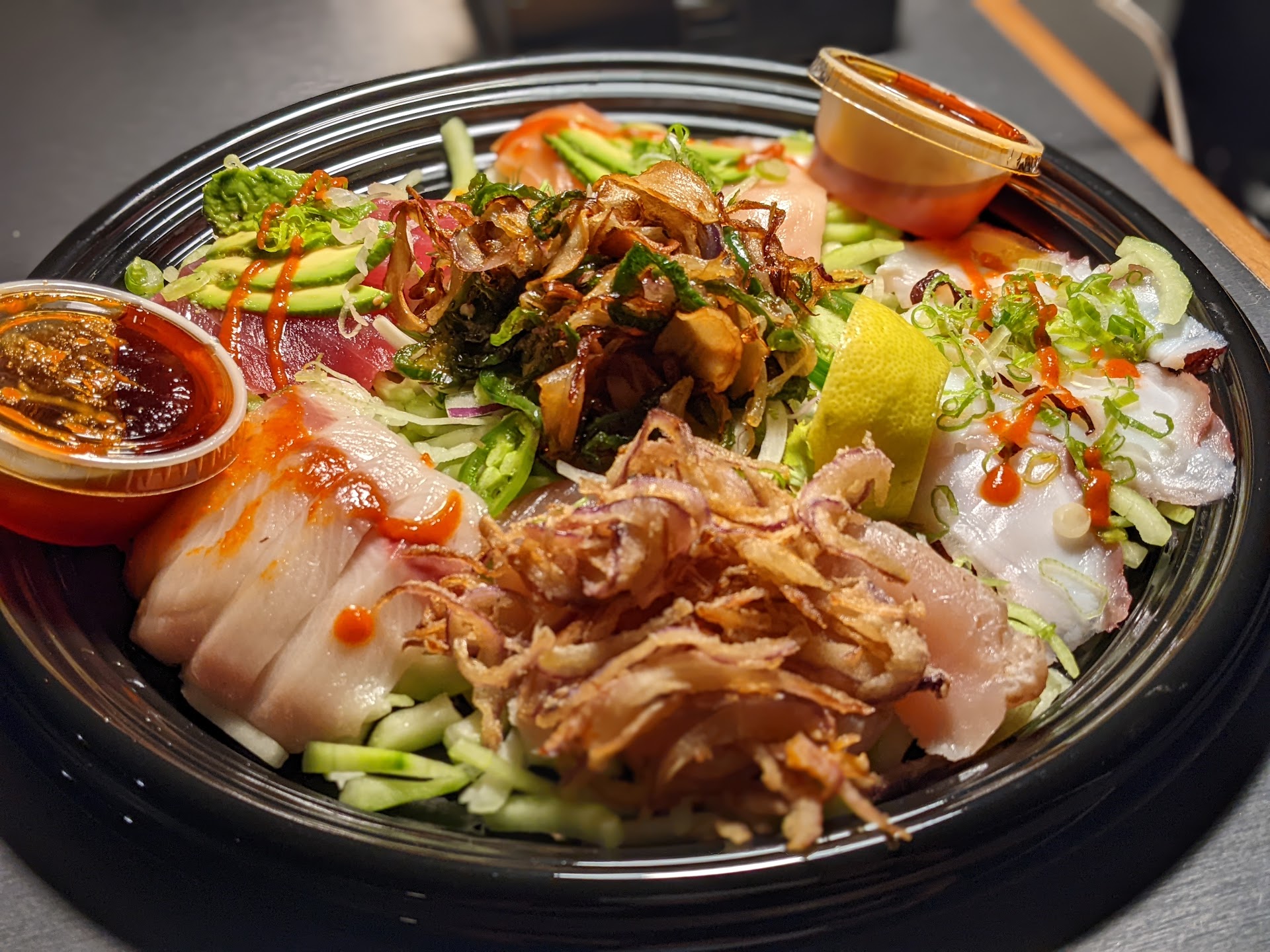 Ā Ā Ā Read moreWe had dinner at this establishment in the hopes of finding a good/great sushi place near the movies but sadly we were disappointed. Ordered calamari which was super deep fried, not chewy, but practically tasteless. It didn't help that they served it with marinara sauce which made me feel like I should be having mozzarella sticks instead. Roll-wise, the overall flavor wasn't bad but the fish wasn't that great. The California roll was good, but it's hard to mess that one up. The soda machine (would normally have a Japanese brew but cutting back this month š) must not have been working right, drink was totally flat. A couple of the server/helpers seemed a bit too young to be working š¤·š¼āāļø? Atmosphere was ok except for the music which was way too loud for a sushi place. I suppose it had more of a sports bar vibe with 3 large screens facing the tables. Pricing, on the higher end. Overall I was hoping for much better! Maybe they'll improve, despite having been open there for...