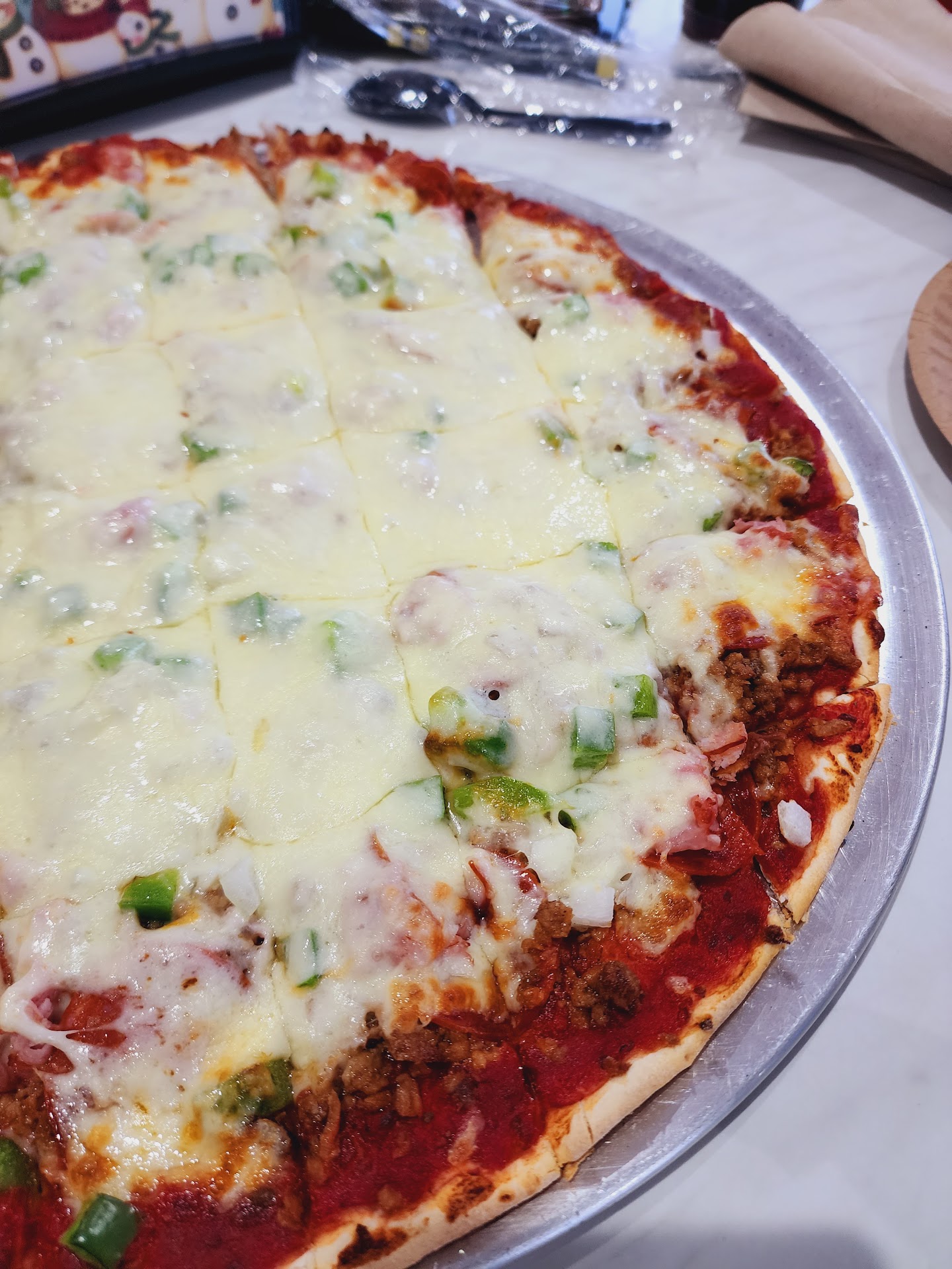 For the travelers coming in, this is a place to skip. You can have great pizza and better customer service anywhere. There ia no direction when you walk in accept ro seat yourself. We had to wait for a table to be thru with their menu in orser to view our choices. Then you wait because no one knows you have to go to the back to order. When you approach the counter, and mention these concerns, you are greeted with snarl. So professional from the dark haired manager girl. We ordered a thin crust supreme, 2 chef salads, and a burger w/fries. All on one ticket. After 28 mins we checked on our order. Still cooking. It's a small place so there's about 10 families here. It's been an hour now. We ask again. 5 mins later our Supreme arrives. They had no idea what table it went to. Lol They literally ask table to table who ordered this. My daughter is still waiting on a burger and fries. It's been 1hr 13mins. I ask the waitress at the counter where the salads and burger and fries are. She goes to the back and comes out to tell me they are making it now. NOW? Did you think we were eating separately on one ticket? Ok, I'm baffled by the lack of common sense. I ask for a manager, the waitress swings open the door to the back and the girl behind the door says she's the manager. I'm frustrated at the ignorance of this place,(we are not in the south). She tells me they are putting the burger on the grill now. NOW?! An hour and 15min later. I asked about the salads and the manager says, You wanted the salads first? What?! Yes, we did. The manager tells me that food is made, not by the ticket order but by the food type. Pizzas are made first. Pizzas were being served after the first hour but the other tables, like ours, were waiting for their kids food. The pizza was not up tp par. It was very plain for taste, there was no sauce, and it was layered. Crust, vege/meat (sparsely), and cheese cross the top like a pie without flavor. The staff needs training in professional customer courtesy, customer directives, and food service taste & sanitation. Wouldn't hurt for the health inspector to do a surprise visit..It was an experience but not one I would take my family too again. We were given a refund and asked to leave after my few choice words. There is another pizza and more place not far that is definitely...
