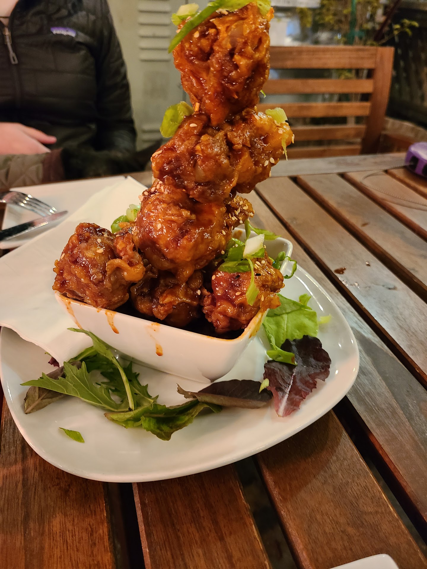 Read moreArrived last night at 10:23pm and apparently the kitchen was no longer able to accommodate us ordering “large plates” by the time our server got to us at 10:30pm on the dot. This was a blessing in disguise though as the small plates were enough for 3 people to share. We actually ordered more than we needed! Here are the highlights: pork belly, green beans and the side of spicy kimchi fried rice (caution- when they say spicy they done mean it). Only lowlight was the Mac and cheese: creamy but the Mac was over cooked and the cheese was a bit flavorless.