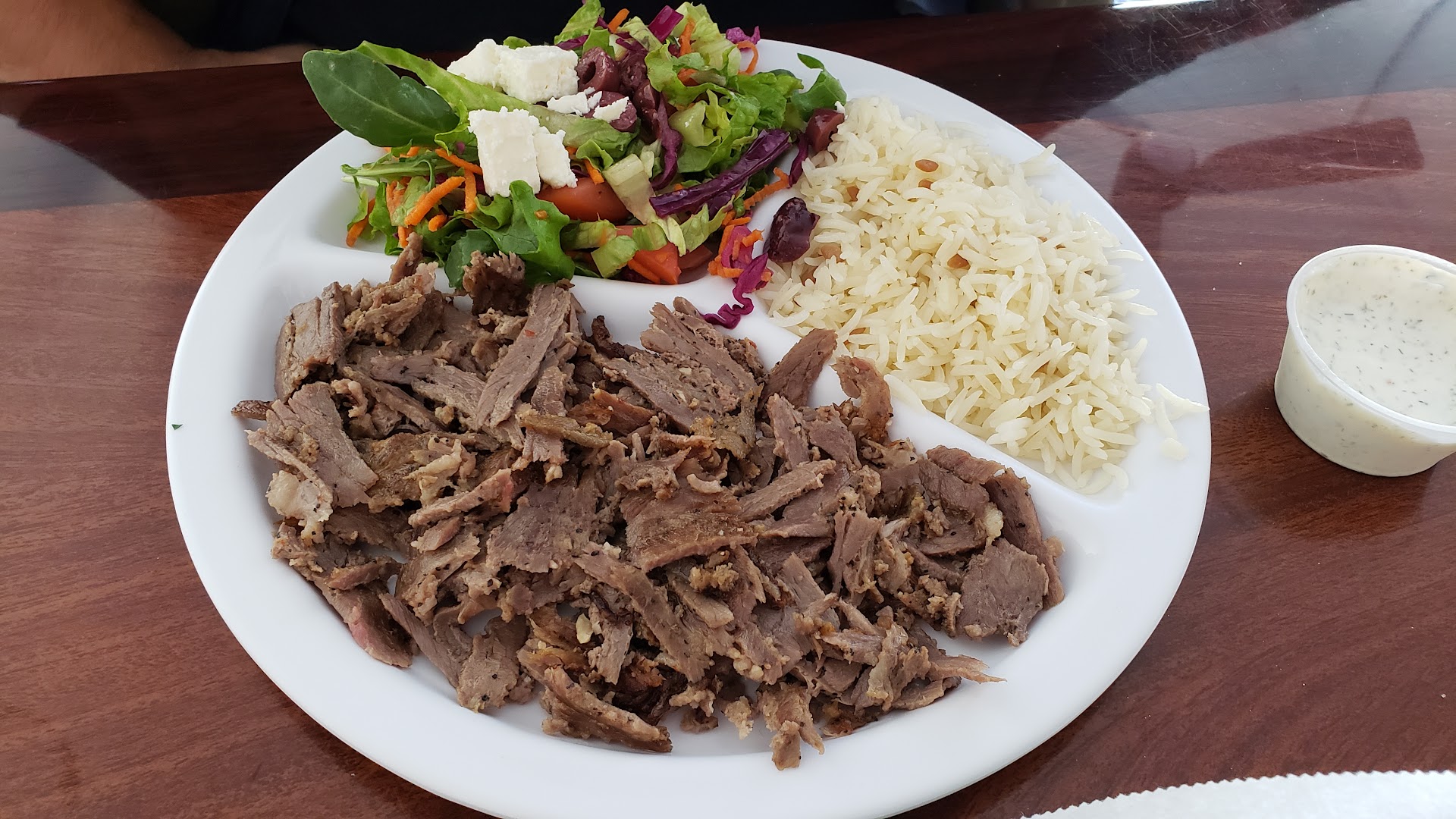 Will maybe try this place again but maybe not. The wrap was pretty good. The cashier, a younger man was friendly but got my sons order wrong. We clearly ordered the beef lamb wrap plate. We were not given the wrap plate but only wrap alone. No problem. I alerted the older man behind the counter and he grabbed the receipt, said it was only the wrap and then walked away. . So, whats the problem? Well, perhaps the cashier didnt hear me, perhaps i wasn't clear. The fault is unimportant. What is important is that i wanted a wrap plate, and was happy to pay for it. That is how restaurants work. We want the food and then we pay money and get the food. They get money, we get to eat. I feel weird having to explain this. We should not be corrected, or have to argue to get food or service. I dont want to beg. I might have ordered more food after that. I was still hungry and wanted to see what came with the wrap plate before committing to more food. I wanted to try one of those desserts too. And, i dont know if they have coffee but was going to try that too if available. Now i just don't feel like investing in this place that doesn't care about me and my family. Not here to beg or...
