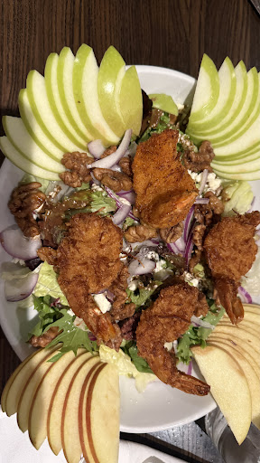 Shelby asked if we wanted hors d'oeuvres. Initially, we declined, but I quickly corrected us and ordered jumbo shrimp to share. I also requested a straw. Shelby returned much later to take our orders after getting our hors d'oeuvre I requested a straw again after drinking most of my soda. My fiancé ordered for his mother first, requesting fish and chips, followed by my salad, his pulled pork sandwich, and our friend's BBQ chicken. Despite this, Shelby's attitude was cold and dismissive, shocking us with her rolling eyes and snubbing behavior. She rarely checked on us, while attentively serving other tables. Other servers stepped in to assist more than Shelby did.