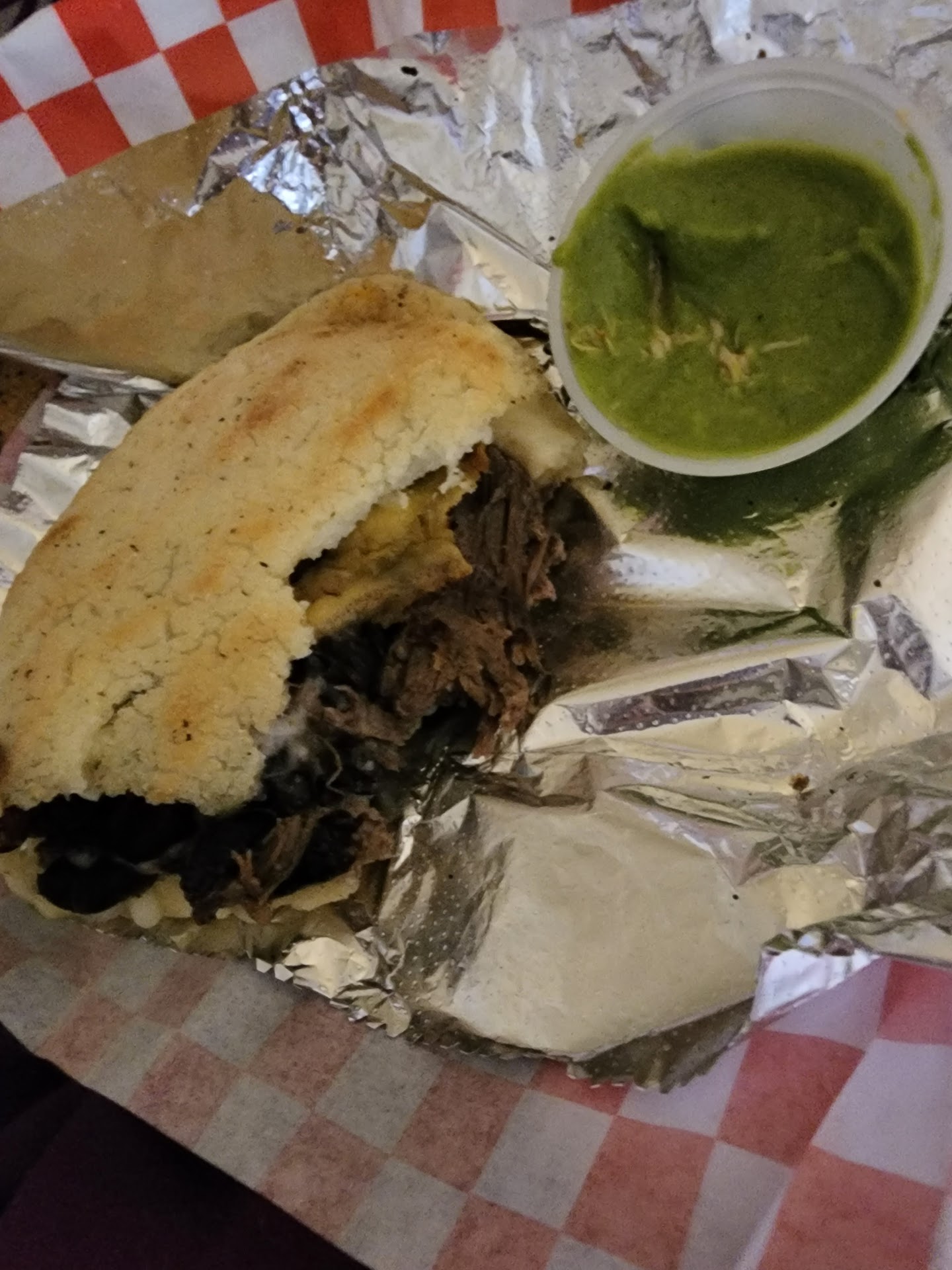 Read moreMaybe I ordered at a bad time? My arepas were pretty dry, stale, and under seasoned. I ordered the pabellon which comes with beef, plantain, cheese, and black beans. The masa was dry and a little stale. The beef needed seasoning and wasnt the most tender. Even my dog wasn't stoked to try some. I love plantain, its my favorite food but some of it was way overcooked and hard. I couldn't taste the beans honestly so I took them out, it was unnecessary. I also ordered the catira which is shredded chicken and cheese. The chicken was super dry and under seasoned. Same issue with the masa. I got all the sauces - spicy, guasakaka (aka wasakaka), and garlic. The garlic sauce was very very good but not unique. I ate the most of this one. Guasakaka is an avocado base and tasted store bought (almost like herdez or something idk). Spicy sauce was my least favorite. It had a ok amount of spice (not lingering at all) but was too bitter. I did order a Papelon as well but they forgot it sadly. Also keep in mind the arepas are pretty expensive and not super filling. I'm glad I got 2. But realistically their arepas should all be $2 cheaper. Unless this really was just a bad day for them. Not really willing to give them...