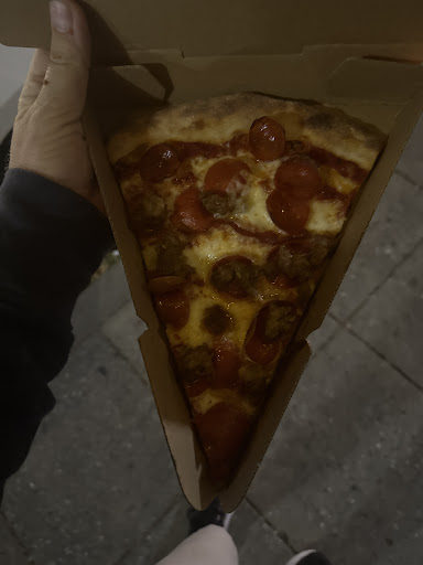 Even at 9pm when we went, they still had a variety of different pizza topping flavors. The pizza gets heated up in a fairly short amount of time, and you get the food quick. The pizza itself is delicious. There's a defined crust on the bottom with a distinct part of the crust being thin and crispy. Really well balanced with a light crispy crust and a small amount of fluffy bread-Inness in the center. The specialty slices are all perfect combinations of toppings. Choices such as the Big Sur and Chicken bacon ranch pizzas are all the most perfect flavors one could want on a pizza when they get cravings late at night. Whole roasted garlic, sausage, green onions, and pepperoni is probably the most divine combination of toppings that could possibly go on a pizza. The same goes for their chicken bacon, white sauce pizza. The quality of the toppings are high too; it's not some mystery meat or bland tasting ingredients like a lot of other cheap pizza places use.