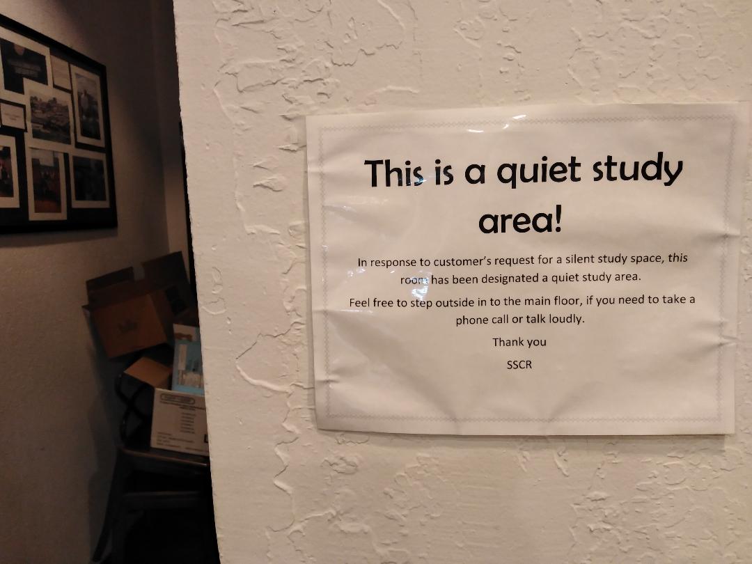 Read moreWe had our first visit to SCCR the morning of 6/19. Guilherme was very helpful at the counter and recommended a few dark roasts for me to try. My wife and I sat in the quiet study area since we like to read while at cafes and it was a little warmer in there too. Because of the sign on the wall, we kept our talking to a minimum and at whisper level. When the other person in the room needed to talk with her #2, they left the room altogether. Unfortunately, this room is connected to the manager's office and we could hear their ongoing phone call. Because their door was open, I popped my head in and gestured closing the door. The immediate response was very rude, explaining that it would be too hot if the door were closed, that the quiet area is not a silent area, and that if I want quiet, I should go down the street to the library. Needless to say, this ruined the experience and we chugged our drinks and packed up. I confirmed with the baristas that my experience had indeed been with the manager and they apologized for the manager's behavior. The manager came out as we were leaving to apologize, but it was half-hearted, continuing to blame the heat issue, that they were already an hour behind and had to make business calls, etc. My suggestion was that they take the sign down if management wasn't going to respect their own quiet zone....