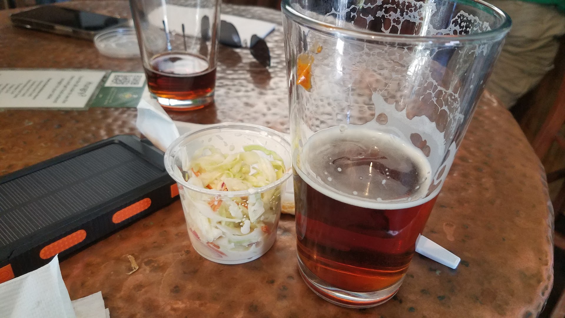 (Warning: young adults from Central Florida in for vacation) This is a VERY CHILL PLACE WITH BOTH AN INSIDE AREA and A SMALL OUTSIDE AREA including covered picnic benches. Scattered around the grounds were people on laptops, reading books, or just having conversations. THEY DON’T OFFER FLIGHTS which was a bummer, but their Nitro Brown Ale was well done. Flavorful and solid. I was excited to also see they BREWED A BLACKBERRY CINNAMON SODA. While the flavor was decent (not the best balance of its namesake ingredients) it also wasn’t as bubbly as I’d liked; it was more watery. Their IN-HOUSE KITCHEN FEATURED SAUSAGE CONCOCTIONS served in hot-dog style buns (which were rather blah), but the flavors inside were much better. The Aloha Sausage featured a great combo of pickly, herby, and creamy flavors (pickled jalapenos, lime, cilantro, onion, and a creamy teriyaki aoli) while the Beer’s Best Fried sausage featured a more familiar concoction of sauerkraut and...