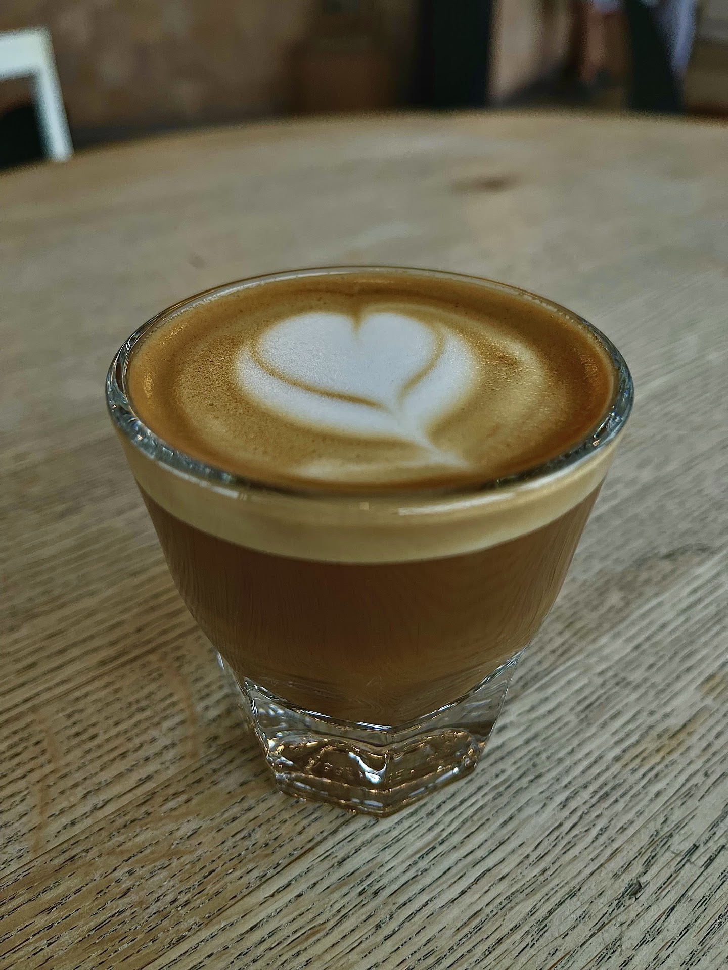 Ā Ā Ā Read moreThis is a classic cortado, in a Gibraltar glass. This is the third consecutive day that I have had the pleasure of imbibing this blissful drink early in the AM. This is, as might be said, āa drink that justifies the beans,ā prepared for me by a very thoughtful and able young woman, fortunately for me, she has been at the helm of the contraption that expels this amazing elixir and places the final touches, a heart of foam on top all three days. This is a drink easy to fall in love with, carefully looked after from start to presentation by her mastery of the process. Thank you, Lisa, grace under pressure, about 19 bars...