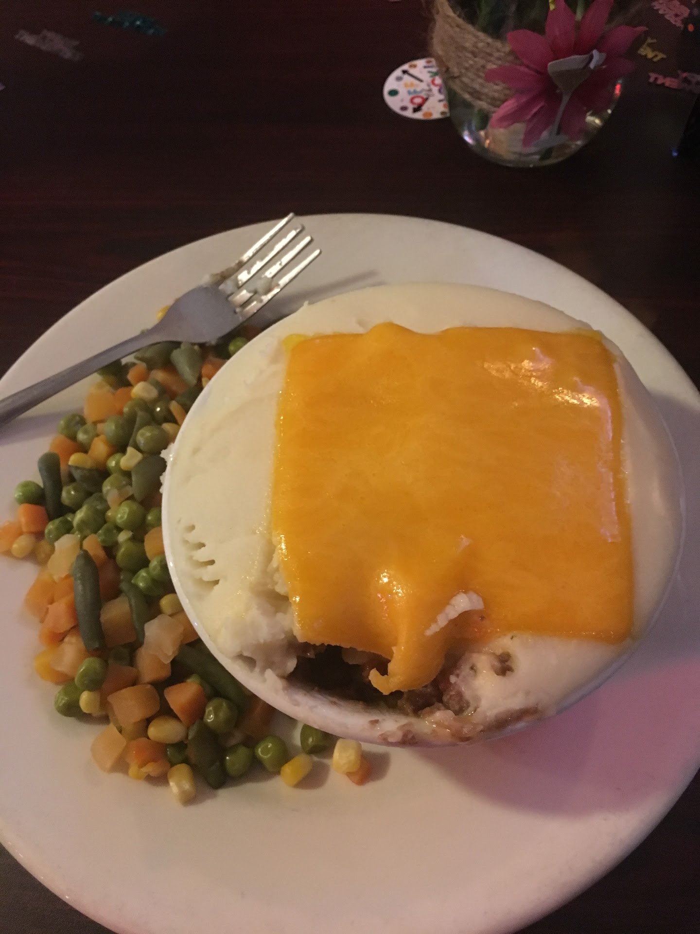 Kraft cheese singles anyone?? Disappointed in the quality of the Sheppard’s pie. Cheese singles with overcooked veggies. Wife’s fish tacos were actually pretty good but she had the same overcooked sides. It gets pretty packed and the service suffers greatly but none the less. This is still a local favorite with strong demographic and good spot to meet people in a niche demographic (over 40).