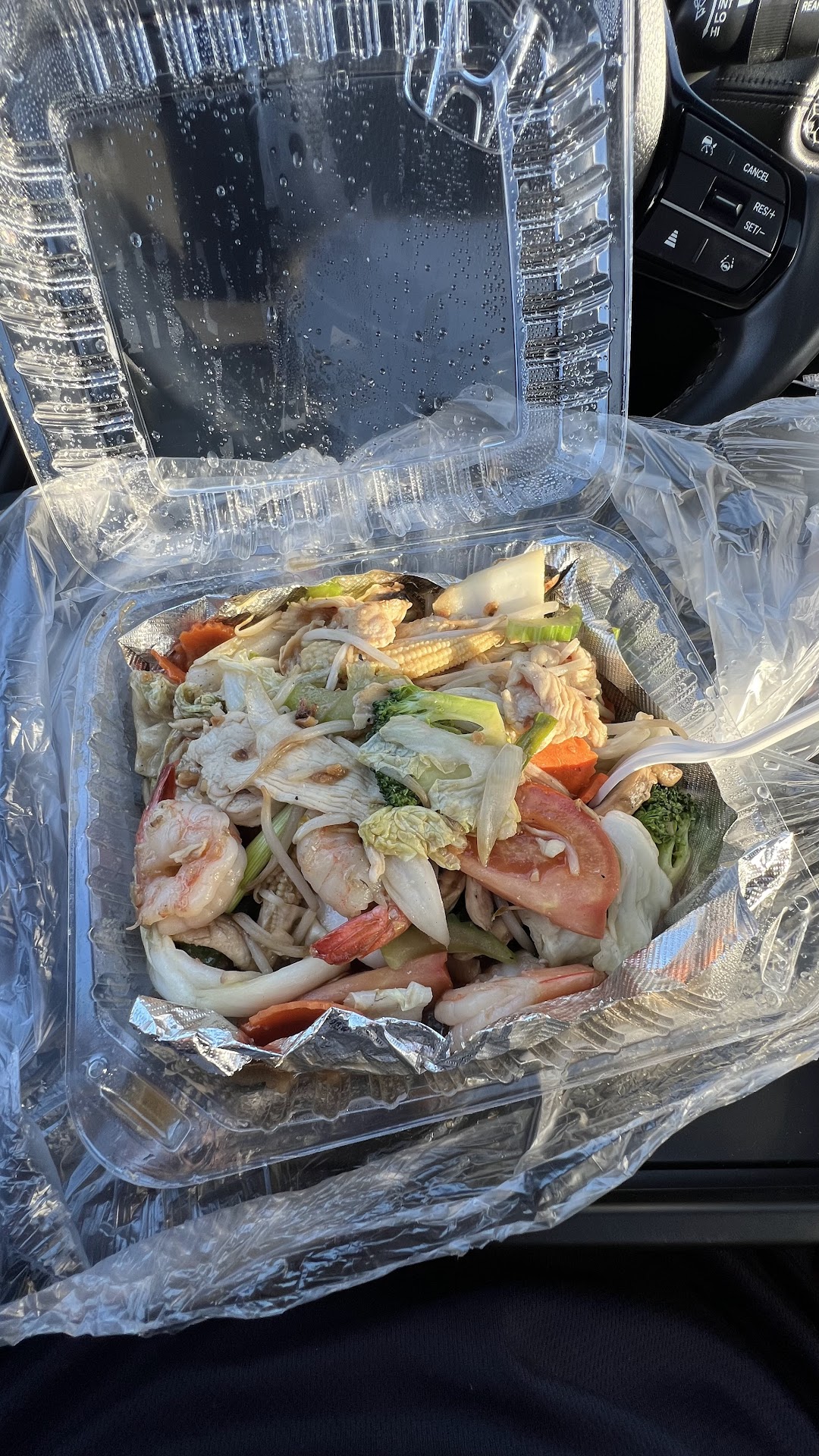 Read moreFirst time buying from this restaurant. I was craving Thai food, and it was the first restaurant that popped up on my google feed and nearest to me. Ordered the mixed veggies plate with shrimp and chicken for carry out. Let me tell y’all… serving size was packed! Great amount for $14 dollars. It also came with a side of white rice. After finishing my plate at home, I had to hop back on google reviews to give this place a 5 stars. That was very delicious and satisfying! Thanks for the packaging and providing all the needed utensils. Food was very flavorful knowing it was just a plate of veggies.