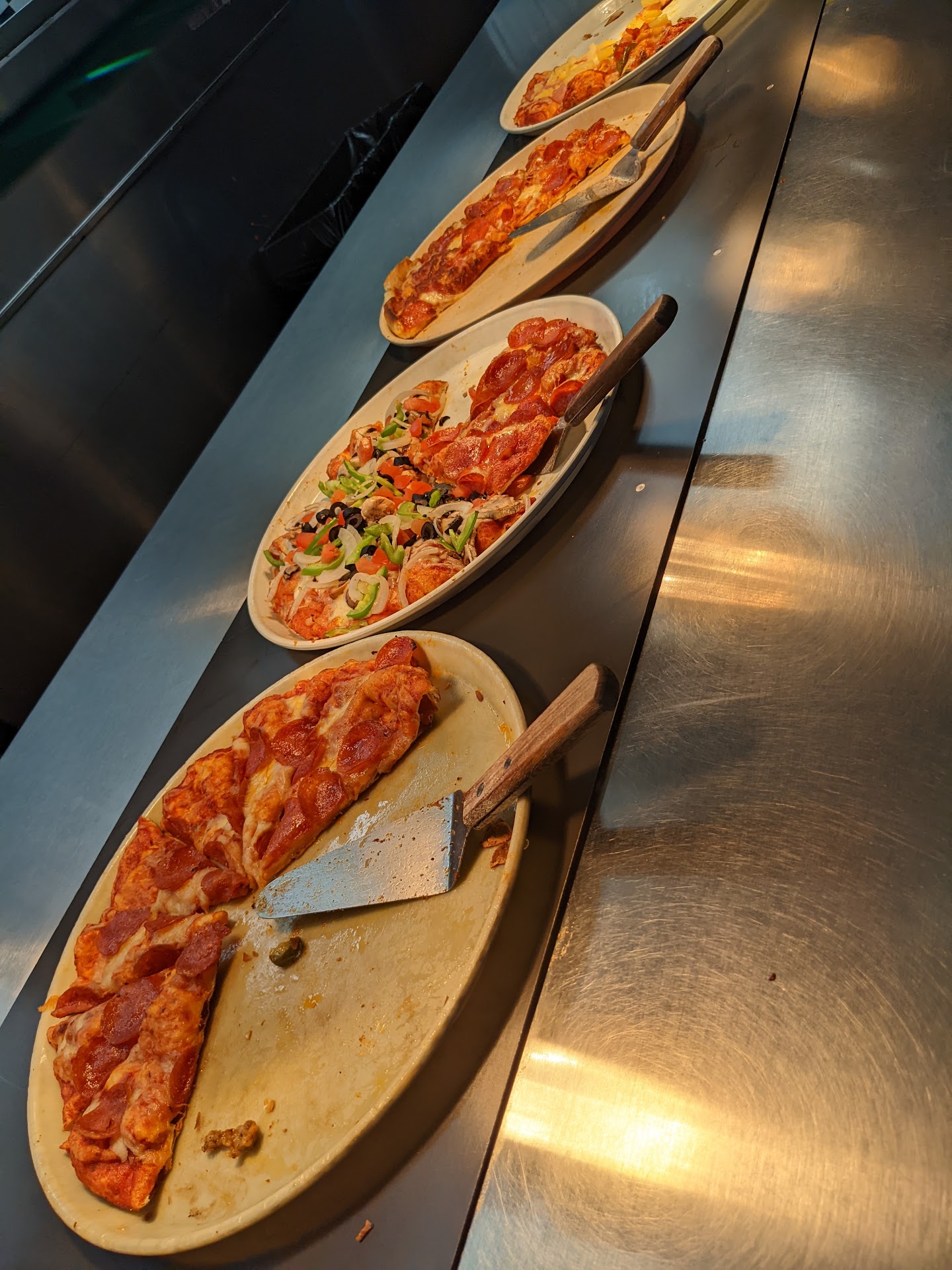 ย ย ย Read moreSo we went late on a Saturday night and we were the only people there, which was great however, there were maybe 10 or so employees working that evening. We get there, and there are some sitting watching their phones and hanging out, which was understandable given that there was no one there. Again, not one other customer was there. So we got there and the place was filthy! There was food all over the floor, trash on the tables, and basically a mess. Given that they had so many employees on and some were just chillin, they could have grabbed a broom and picked up. I seriously almost asked for a broom it was that bad. I would recommend that if you have so many employees working that cleaning up when it's that slow, it should be a priority and an easy thing to do. Also, it felt like the mojos were refried, which was a bummer because mostly everyone goes for that, and at that point we were like, let's just go. Pizza was...