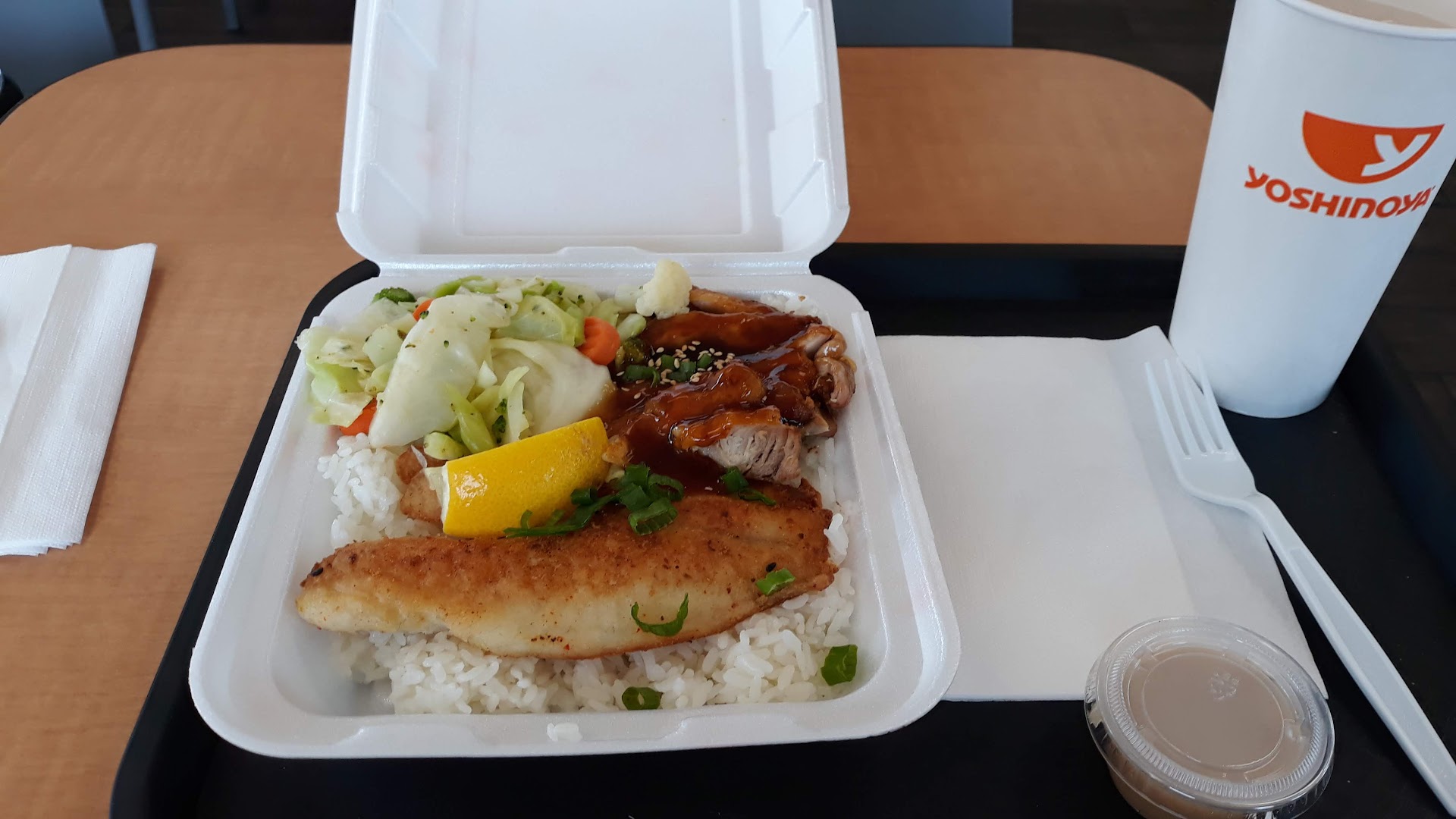 Read moreI just order a chicken bowl with rice only , no veggies , no sauce and a cheese cake. I go and check it when my order was done. Good thing I did cause it was the wrong order. I told the young lady at the window , I didn't order this. I just wanted chicken and white rice only. She comes back an says this is what you ordered. I go no. I order what I told you . Why would I order this with sauce if I don't anything like that. She said the person making it said I had to take it. Wrong. So they take it back , bring me another one and it has nothing but fat juice in it... what the hell. ! Maybe they need to learn english or something.... never going...