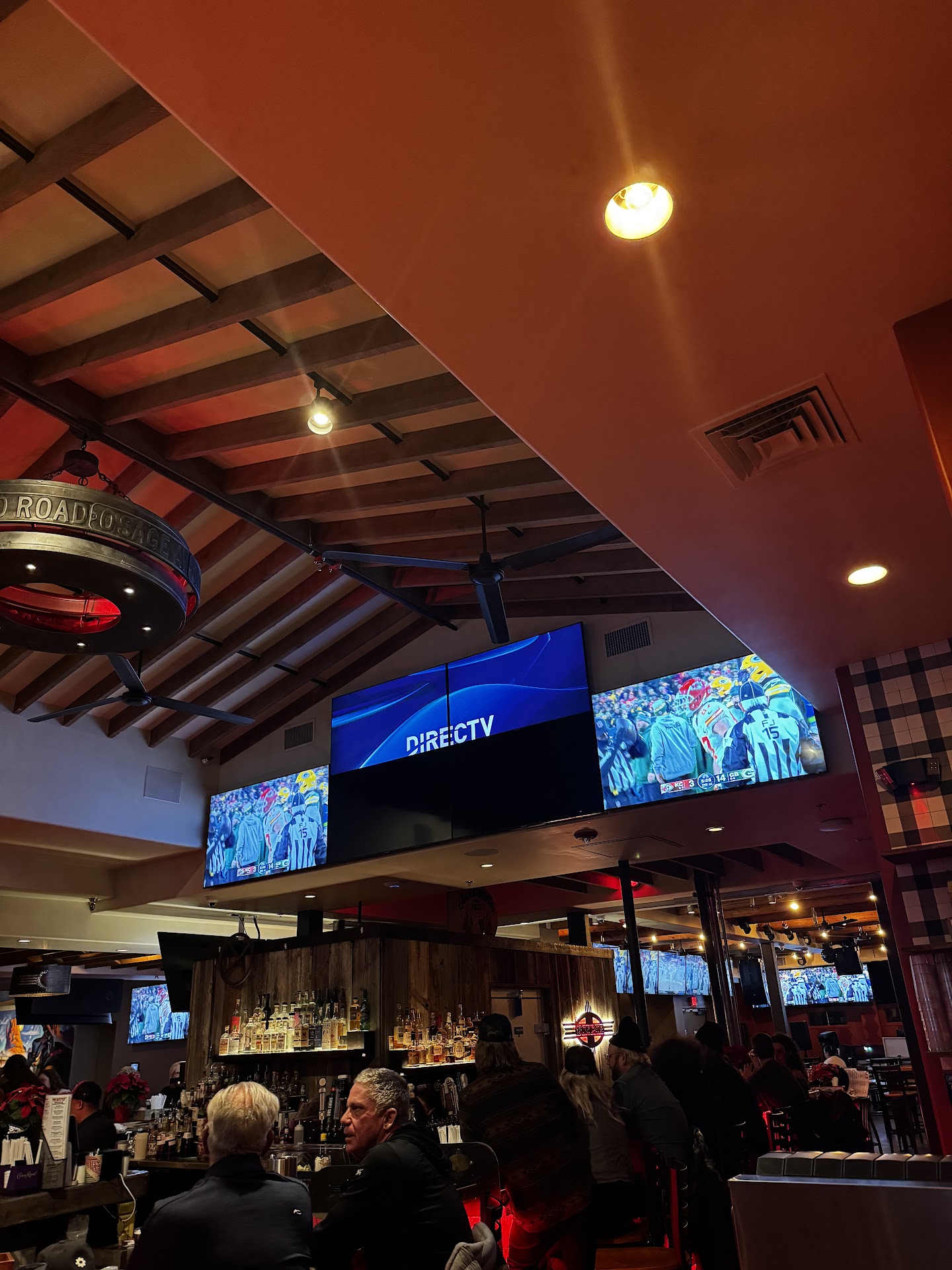 I wouldn’t call this a sports bar and if you are going to reliably watch a game then I would go elsewhere. We came to watch the Sunday night football game and would expect they’d have the game dialed in. Instead the manager was “working on it” for a solid hour, a cartoon kept blasting over the loud speakers. By the time the manger figured it out the game kept going in and out and there was no volume or volume that was not loud enough. TVs on the wall were out and just a piss poor performance for an alleged “sports bar.” We watched the game crouched over our phone. Our waiter could have been any less interested in actually waiting and seemed more annoyed when we needed basics like utensils to eat our food with, drink we ordered that he forgot about and salt. We sat with empty drinks and waters, we would have liked to have spent money and put more food and drink orders in but our server was nowhere to be found. We were really to stay and spend money eating and drinking but we couldn’t close our tab out fast enough to get back to our airbnb to actually enjoyably watch the game where we wouldn’t be “bothering” someone who’s too lazy to do their job, he seemed drunk or high. The audacity that their only options for tip are 35%, 30%, or 20%, my husband who’s a former night club and bar manager himself felt obligated to tip even tho our waiter didn’t wait on us. If I were the owner I’d be embarrassed, I think someone from management or the owner was there decorating the Christmas tree. She abruptly and oddly asked us what we thought of it while we are trying to watch the game we came to see. I could careless about their Christmas decorations. She was “bothering us” when we didn’t know her, didn’t initiate conversation and were already highly upset about the level of service at that point, it was weird and unwanted and she didn’t seem to get the hint that she was bothering us. Food orders that didn’t belong to us were attempted to be given to us and our food was almost given to another table which just goes to show how this dive is so poorly managed. Food was mediocre at best even for a “sports bar.” The busser had more hustle then anyone we...