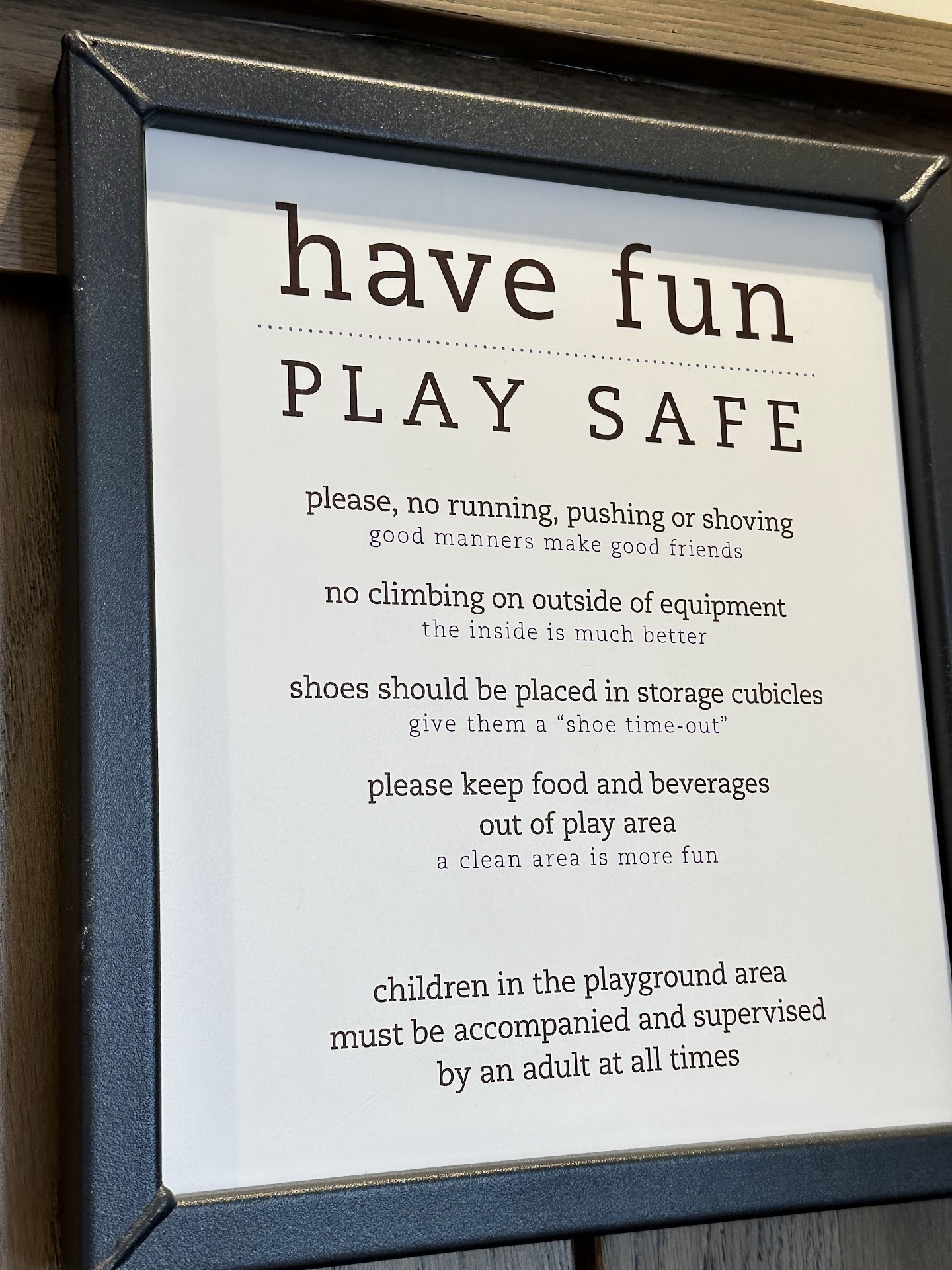 Also...their play area. I get that some kids are bigger and rougher, but some of us have taller than average kids who are mentally and emotionally a younger age, and we only come to Chick Fil A to play in their play area. My girl is right under their height limit, and was told to leave bc there was a ton of older boys that she was NOT associated with. Younger sister was OK, but not older sister