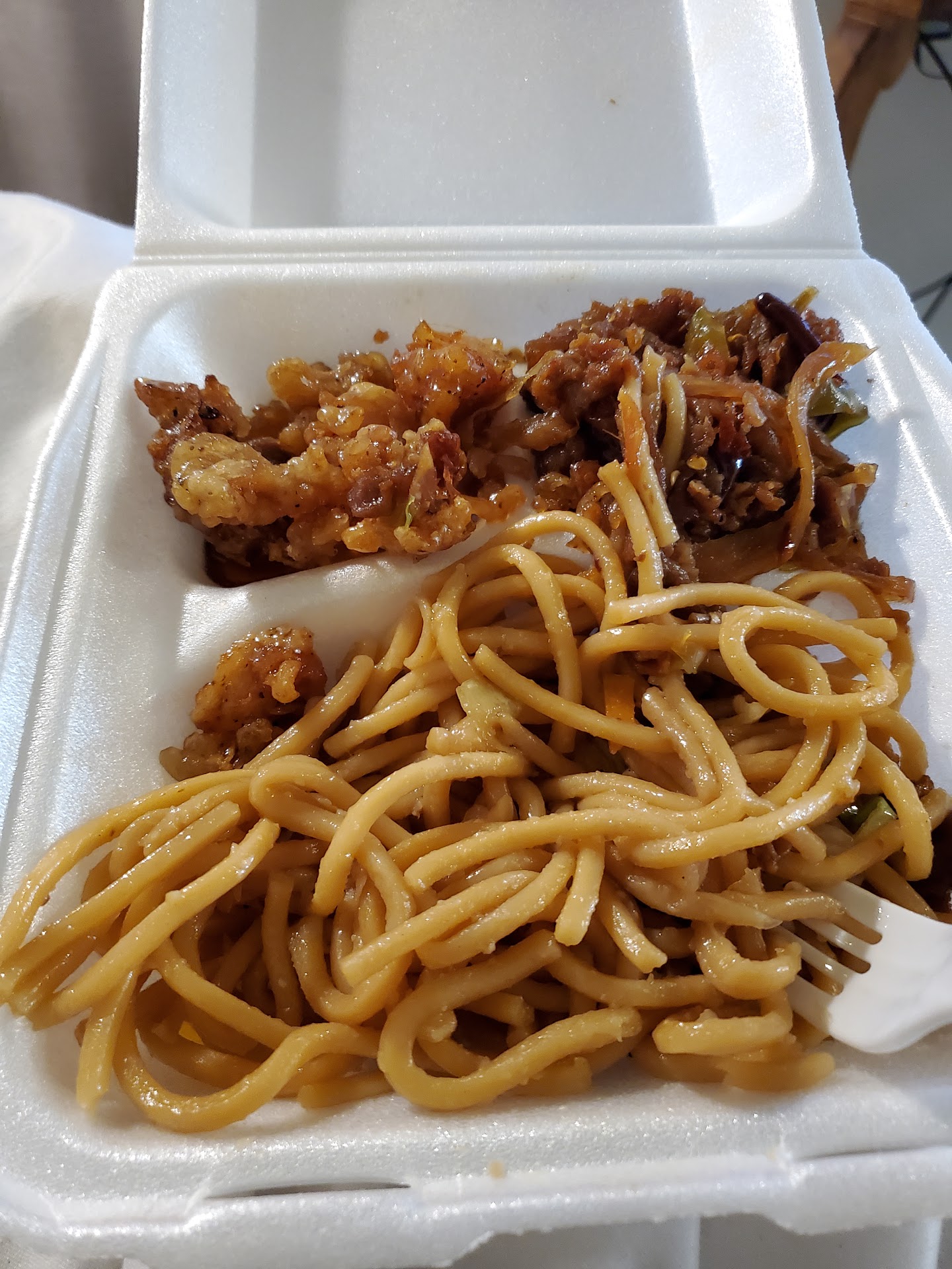 Started with a toothsome lemon chicken that was fried correctly. The spicy orange chicken is true to its title, with a piquant sauce that marinates the meat and celery. Amateurs, have a soda or bottle water nearby when you venture off into flavor town on this one.