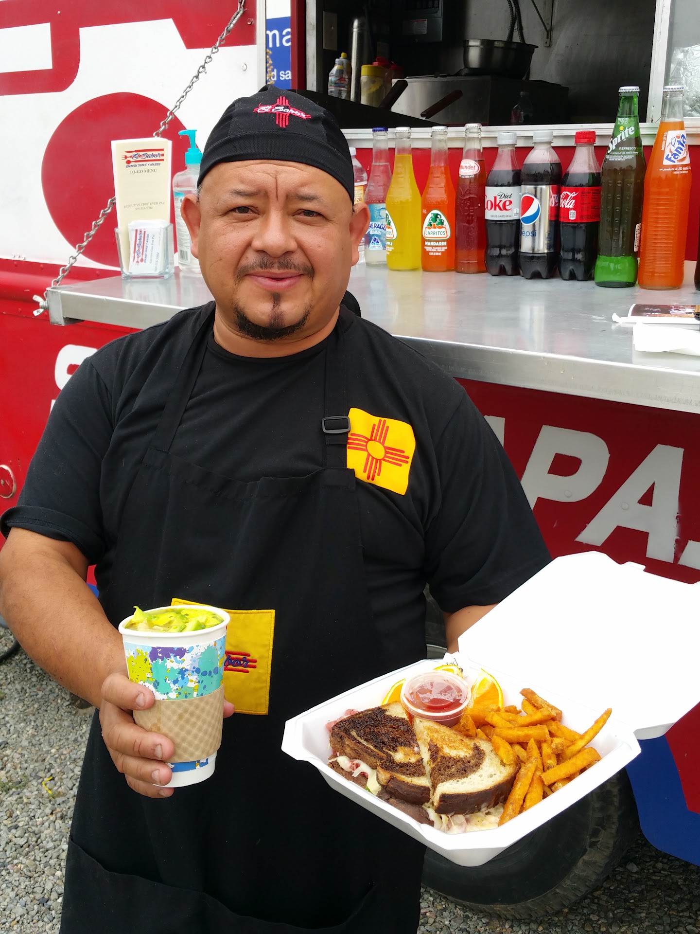 OUTSTANDING FOOD & SERVICE, AND MY VOTE FOR BEST FOOD TRUCK IN SANTA FE! Executive Chef Ever Paz (Formerly Executive Chef of Santa Fe's historic El Farol restaurant) now offers exceptional food (and generous portions) to his customers at his bright red El Sabor Spanish Tapas Food Truck at 518 Old Santa Fe Trail, Santa Fe, at the intersection of Paseo de Peralta (right across from Kane's neighborhood grocery store and Capital Coffee). Ever and his wife are both from Central America and bring authentic Latin American Spanish Cuisine with the quality and flair one expects in a fine restaurant. Since my first visit here, over a year ago, El Sabor has become my favorite food truck--and favorite restaurant as well. Other patrons must agree because El Sabor became one of the top-rated Santa Fe food trucks within months of opening. Ever and his wife Anna are gracious hosts. My favorites are their ribeye skewers, shrimp tacos, pastrami Reuben (pictured) and their chicken tortilla soup--loaded with chicken, tortilla, veggies, and fresh avocado (pictured). El Sabor Spanish Tapas is also available for catering and for special events. Review by Daniel Williams, NM Actor, Writer, Filmmaker, Teacher, &...