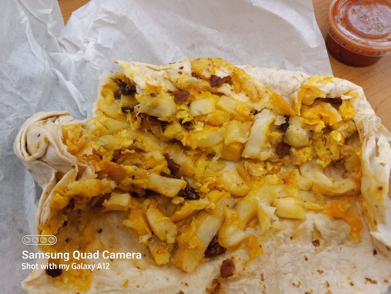 Read moreMorning deal is now a crazy $7.04 (last straw will find a new morning breakfast spot) I had already paid a dollar more for extra bacon because if you don't you really do not get any bacon.(The pic on here is today this is what added bacon looks like, as pointed out below it is less than regular bacon should look like - so now I am paying $2 for extra bacon I don't actually get) A lot of people in our office and our agency get their morning deal. Their breakfast burrito was really good and was/is a great deal for $3.24 but the past couple of weeks the potatoes are really crunchy and not done/cooked and when you order bacon or ham you barely get any actual meat so I even tried to order extra bacon only to get charged more to get the actual bacon I wanted and ordered in the first place, in fact they seem to completely load it down with mostly potatoes with just a sprinkling of actual other items you asked for. All in all tastes ok but mostly potatoes that you will taste. Also the past few days or so they have been using frozen french fries instead of real potatoes - Really gross and different. I only go now because it is food in the morning and that is it and they have decent polite ladies who take...