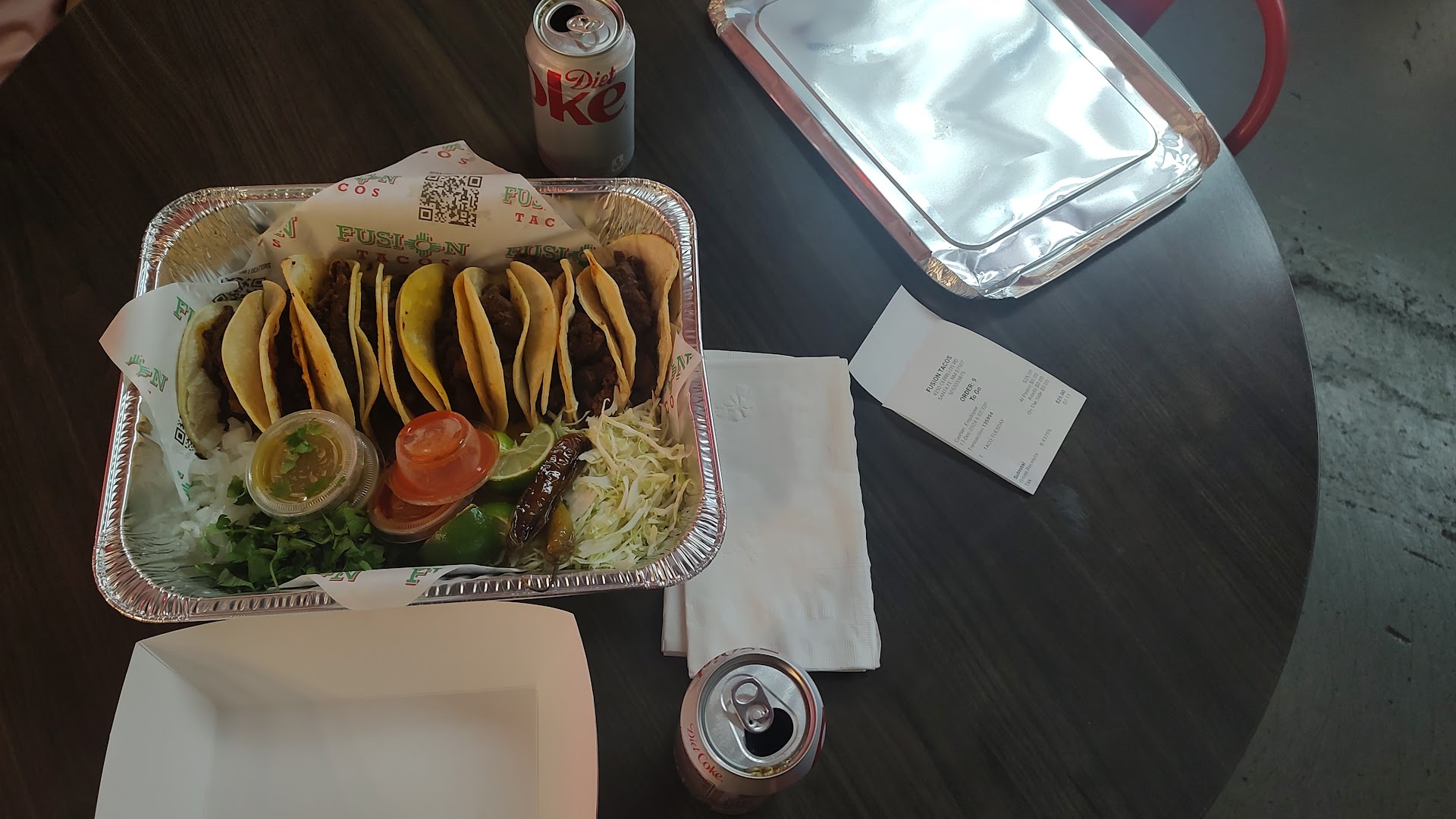 Read moreI was craving something different today and decided to go and try out Fusion Tacos at this location for my lunch break a little after 1PM and I was very disappointed. My order took longer than I expected and there was barely any customers. I was very pleased with the cashiers customer service that was great, BUT while I was waiting for my food all you can hear from the back was laughter after laughter very loudly and bad mouthing. Such an unprofessional business. This was my first and last time spending my money here. The focus should be on the orders they are receiving rather than having what sounds like a party. Would not recommend....