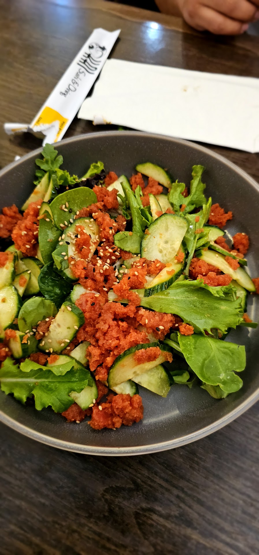 I sat at the sushi bar, as I was only going to order sushi items. The sushi chef who is also the owner of this restaurant was busy making sushi with his mother (?) I think. He didn't look up or greet me in any way...I heard he is only friendly to regulars, and from what I witnessed, that might be true. I did not get any warm, welcoming vibe from him. But the staffs and another customer sitting at the counter were all nice.