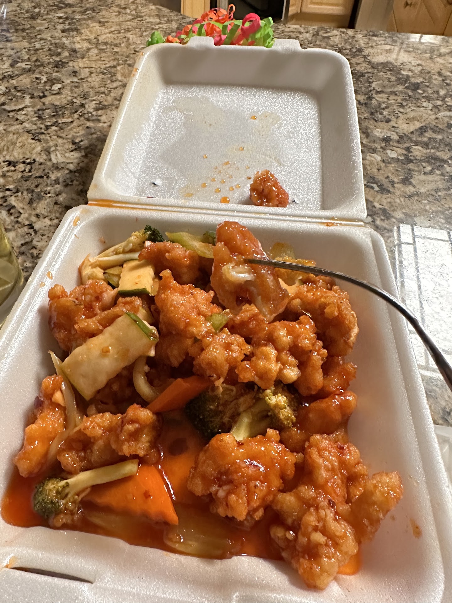 The entrees were all unloved. They kept the sauces separate from breaded items which is a nice touch, but... The sweet and sour chicken was just some fried chunks of meat with raw veggies. Straight up uncooked veggies. Not lightly sauteed. Uncooked and cold. A second entree was sauteed meat and veggies with - want to guess? - no seasoning! A third was an overcooked cutlet. The two entrees that came with sauce were the absolute bottom of the barrel, artificial, straight out the jar sauces. On a scale of 1 to Panda Express, these were a solid 1 (Panda Express being the good option in this terrible example). The entree without a sauce was seasoned with my tears of frustration.