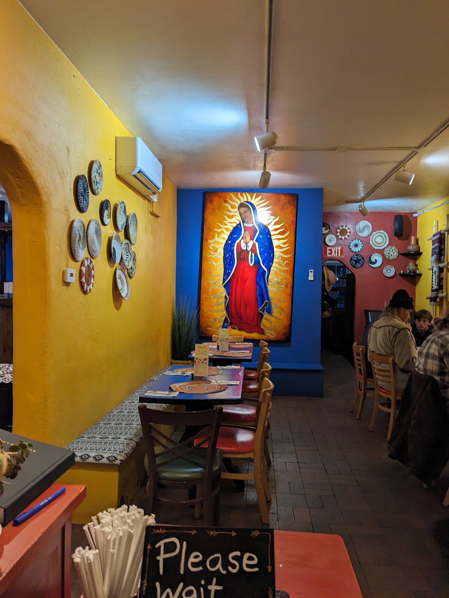 Read moreI first waited from grub hub to deliver but 40 minutes later they called and said the cafes grub app was not working so I walked over.ordered as I always do No Onions Guacamole is really just onions with alittle avocado mixed in. Then I asked if they offered the enchiladas with meat - as described in the on line menu for delivery and she said no but they do hamburger in a flour tortilla with green chili so I ordered it. Then I waited over 15 minutes for the guacamole and chips. Huh? The entre came 10 minutes later . It was not ground beef like a taco but a hamburger .. loaded with raw onions. After picking them all out I told the waitress. No apology from her just do you want us to take out the onions no I already took them out…the head waiter who may or may not have authority asked if I said no onions. You get the picture. Then they spoke Spanish to each other in front of me like I’m an idiot. Secrets? Well the burger was not good.. though the beans were excellent. But..no offer to refund anything or ask about the guacamole or … I was very disappointed in how they handled it. And since I had to work I did not get another chance to eat or enjoy my one afternoon in Santa Fe. I am posting so they might consider just …being generous next time. How hard is it to say Let me take that off your check or First I ordered thru grub hub who then called 49 minutes later to say the restaurants app was not working. So I walked over. Sat down after they cleaned a table. I think if they had more options for tamales (only pork) this would have been a great lunch I’ll bet. The green chili sauce was very good.
