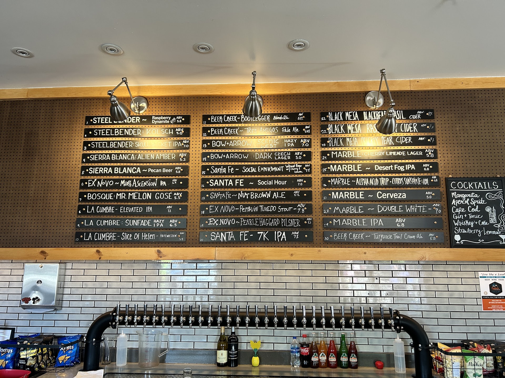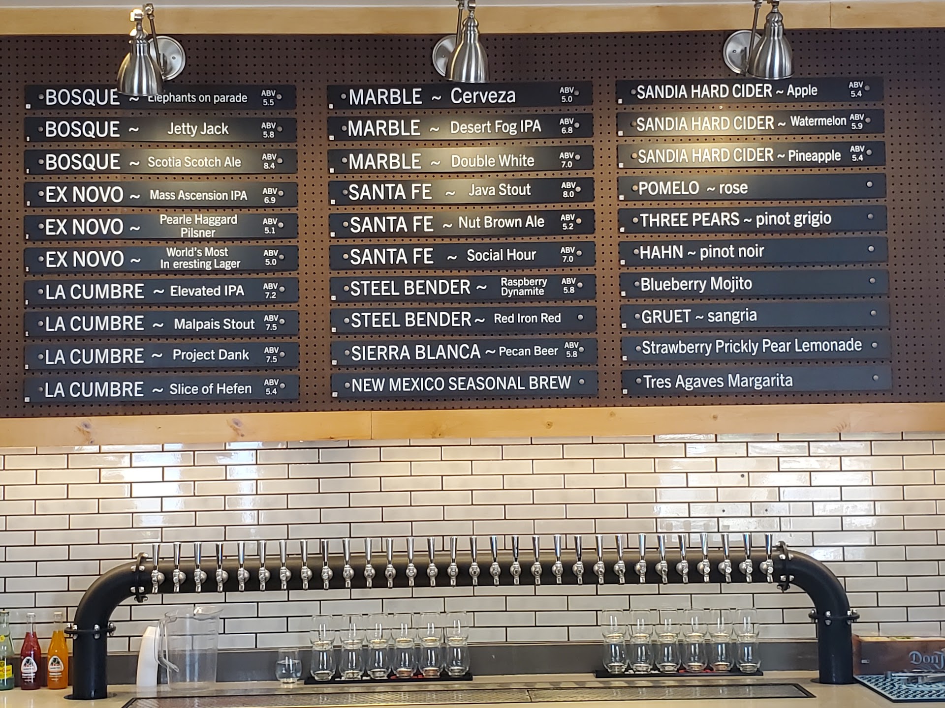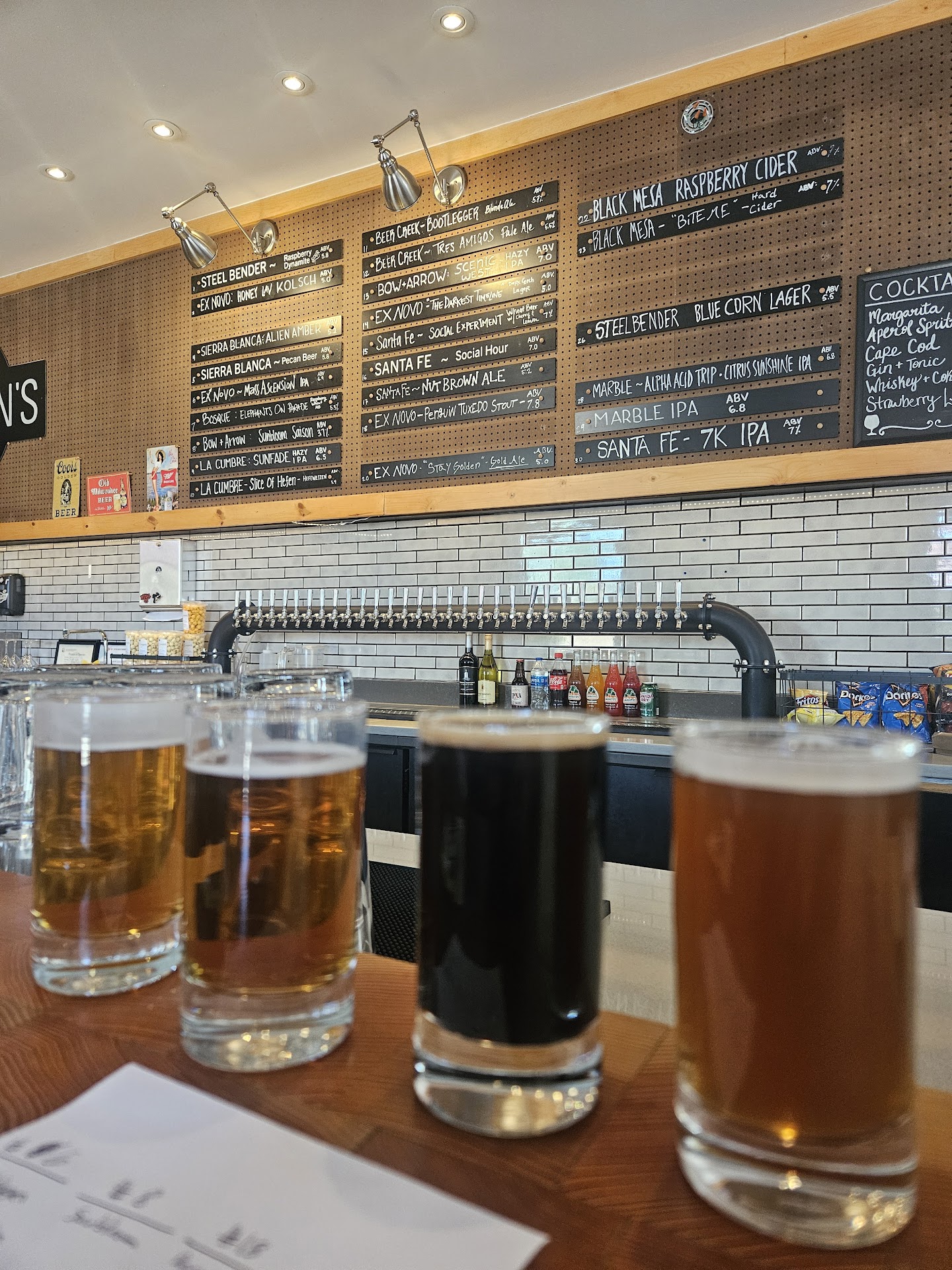 I visited in December and tried a Bow and Arrow IPA which is one of my favorites. It tasted very strange like it was extremely stale. I visited again this weekend. Out of caution, I asked for a taster, it was just as bad as December. I switched to a Marble Desert Fog. It came out a dark brownish color. I asked the bartender if he was sure it was a Desert Fog, and he said it was. It tasted terrible! like old feet. The only explanation I could think of is that they are not selling a lot, and the beer in the kegs must be extremely stale. A group came in right before me and had a couple of flights. From the look on their faces, I would guess their beers were also terrible. They left right away. It's a real shame. I had very high hopes for Paxton's. There is nothing else like it in Santa Fe. My daughter had a blueberry mojito. She said it was one of the best she ever had. The bartender was also very nice. It is a real shame about the beer. I'm sure Bow and Arrow and Marble would be horrified by what was being poured with their name on it. I hope...